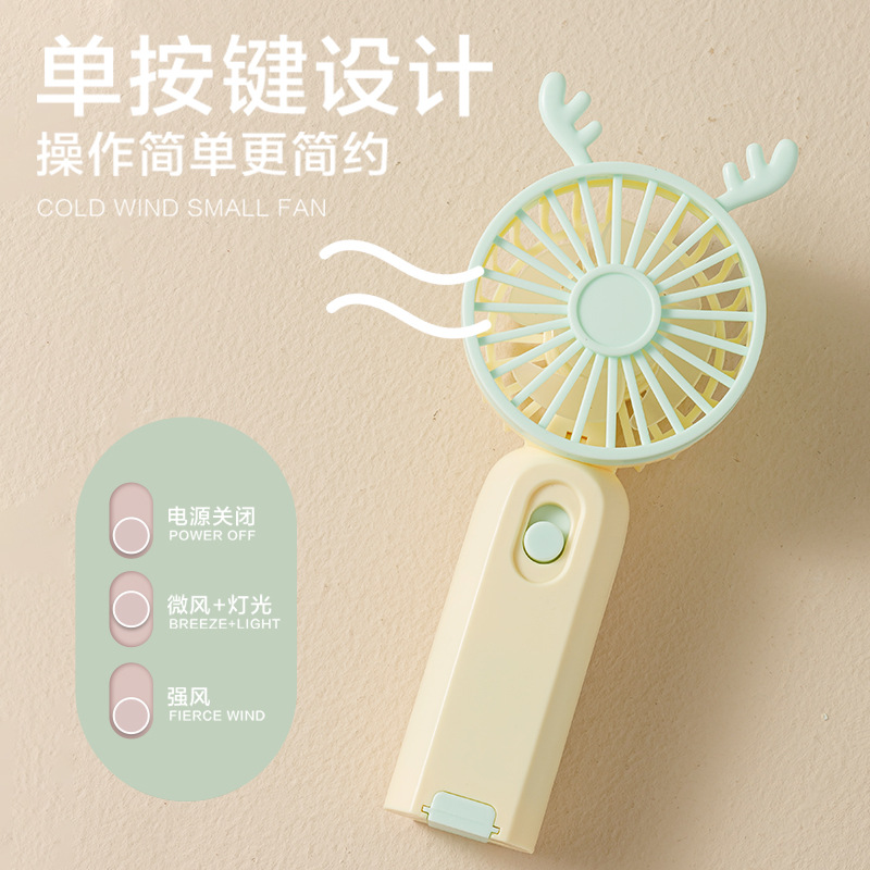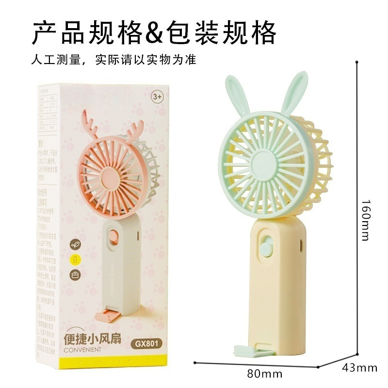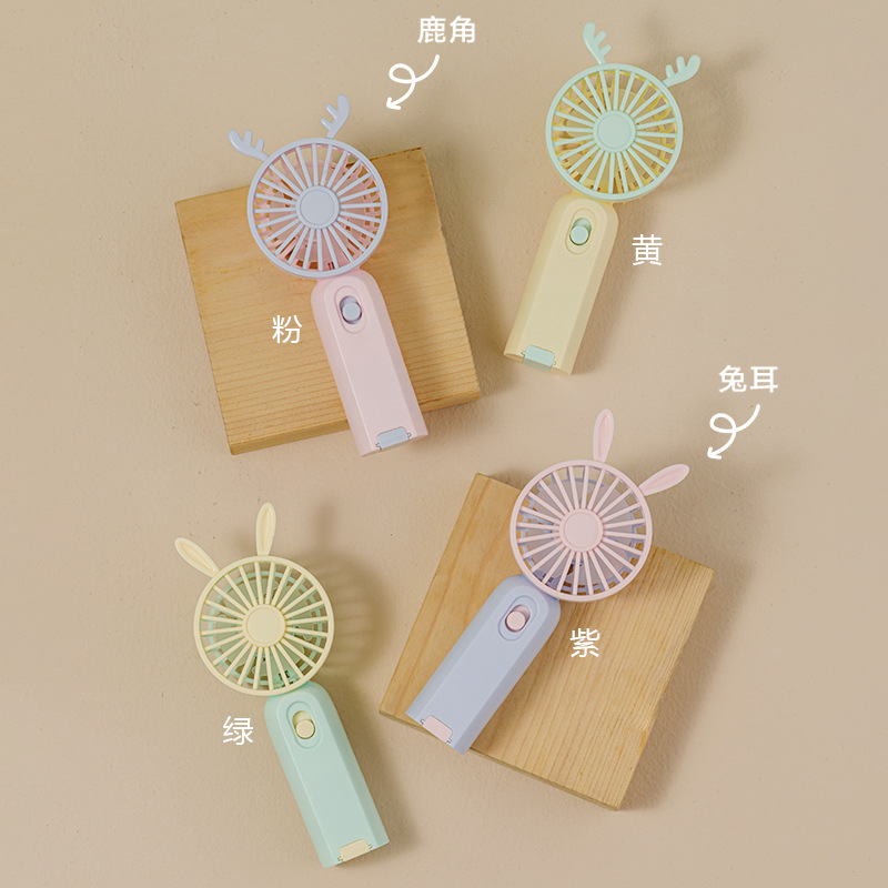 新款夏季兔角鹿角手持风扇迷你USB充电便携桌面手机支架可爱风扇
