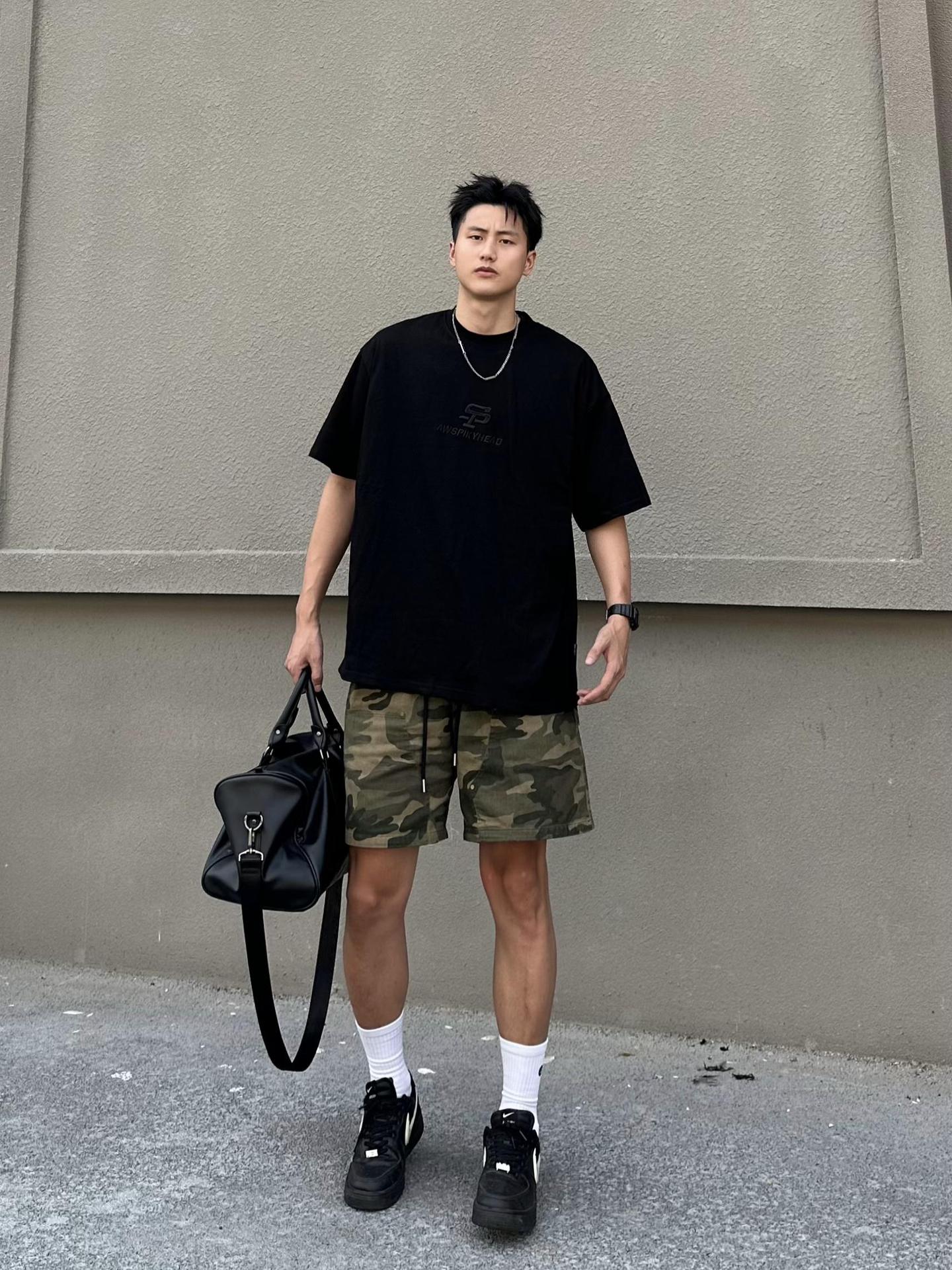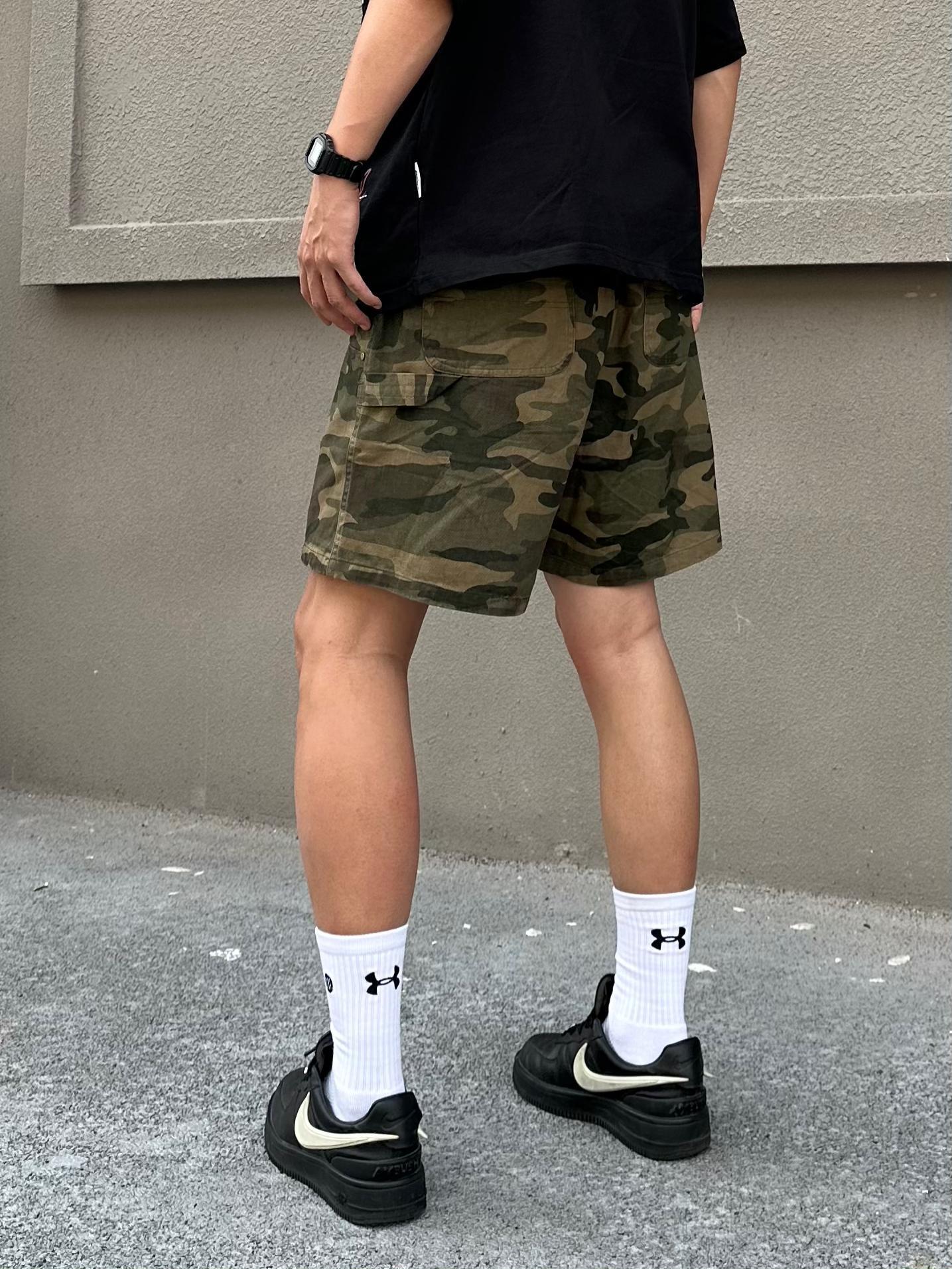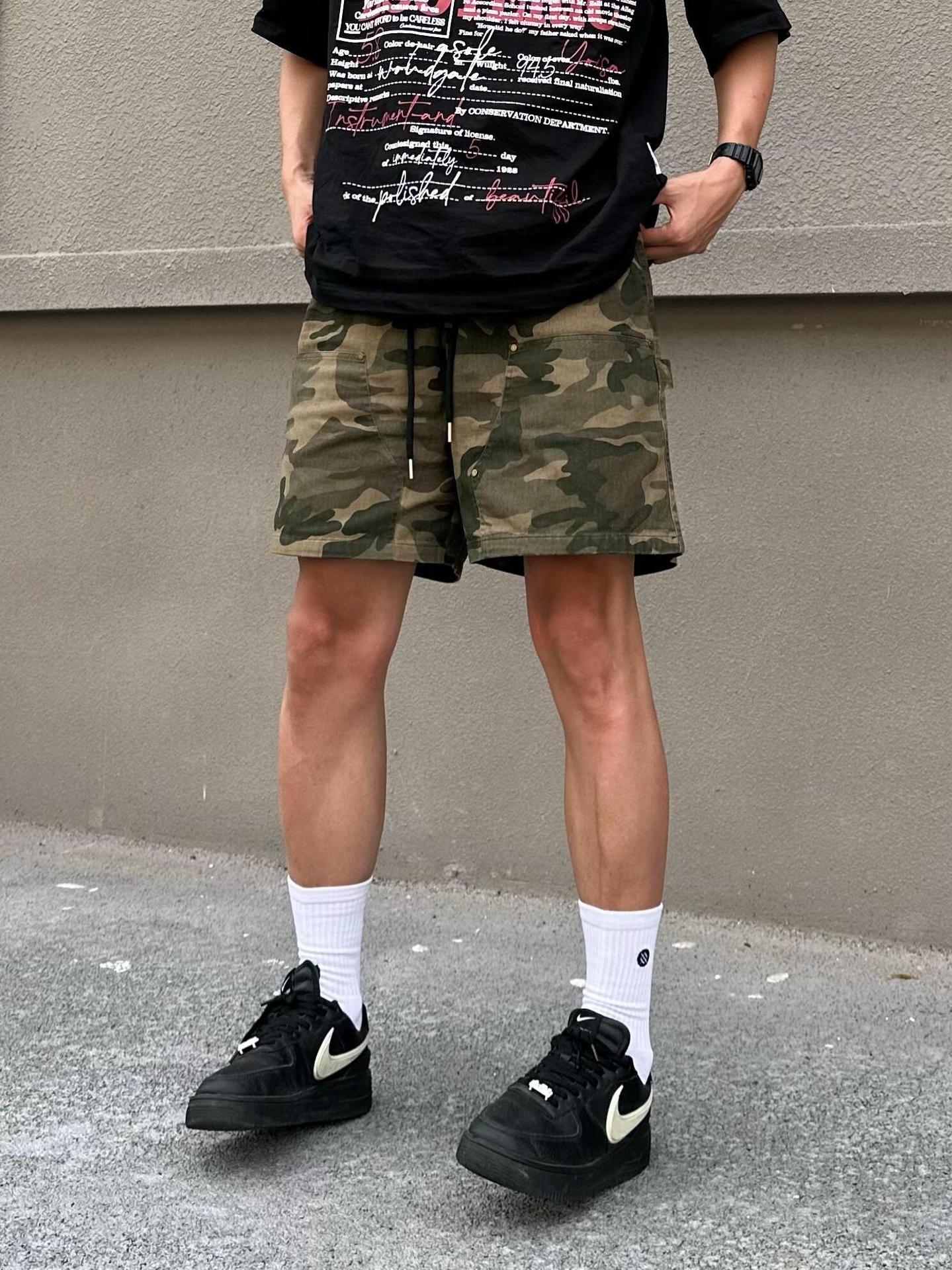 美式复古迷彩工装短裤男夏季新款高街潮牌宽松直筒休闲抽绳五分裤