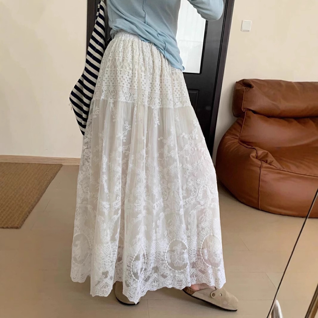 松弛感蕾丝韩版春夏新款慵懒风A型半身裙复古设计感白色半裙女