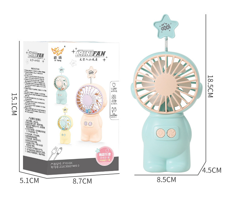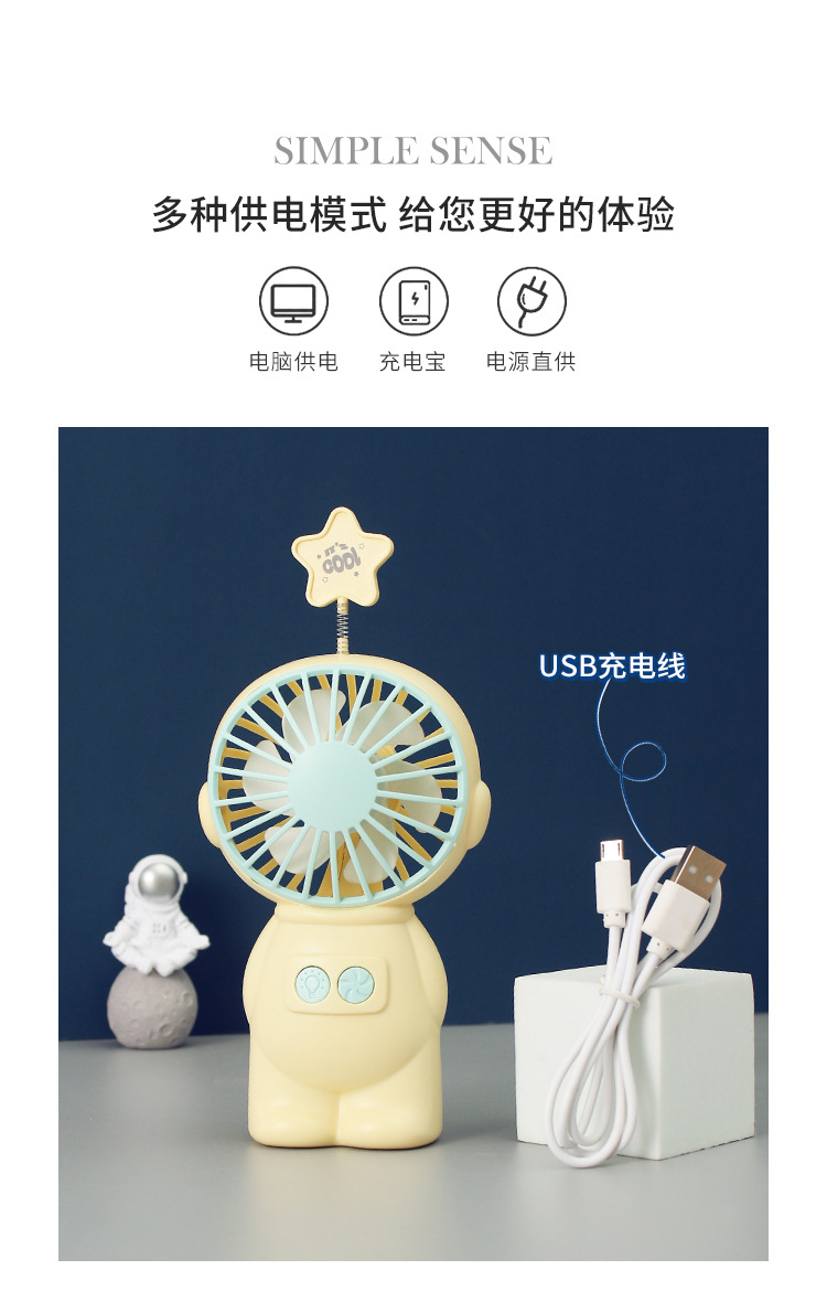 太空人小风扇炫彩宇航员USB充电小风扇星星夜灯小风扇
