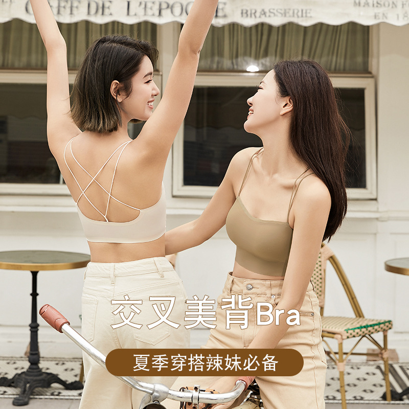 一体式无痕交叉美背吊带内衣女固定杯氧胸Bra春夏内搭背心文胸罩