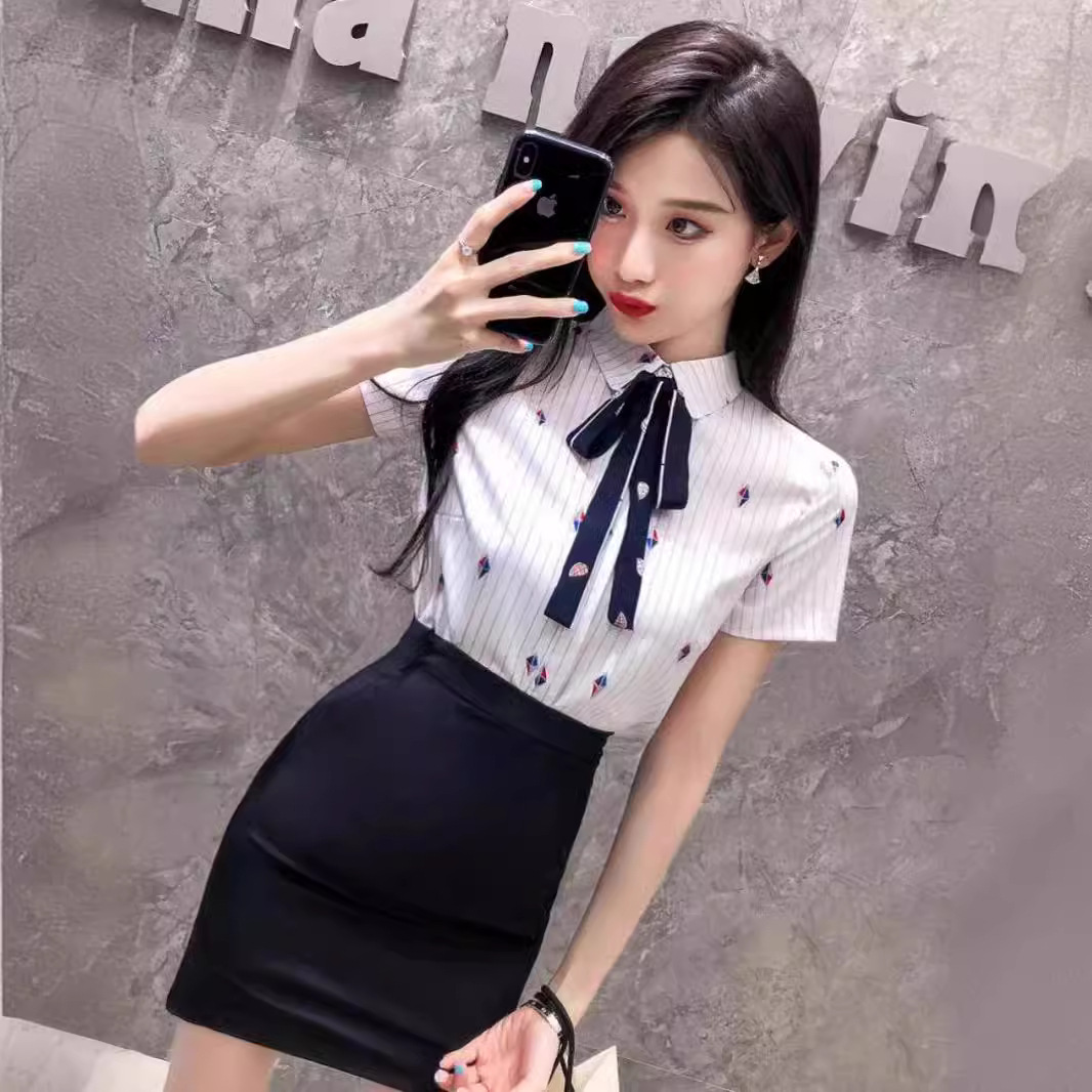 酒店前台职业气质工作装女短袖衬衫职业套裙两件套足浴技师工作服