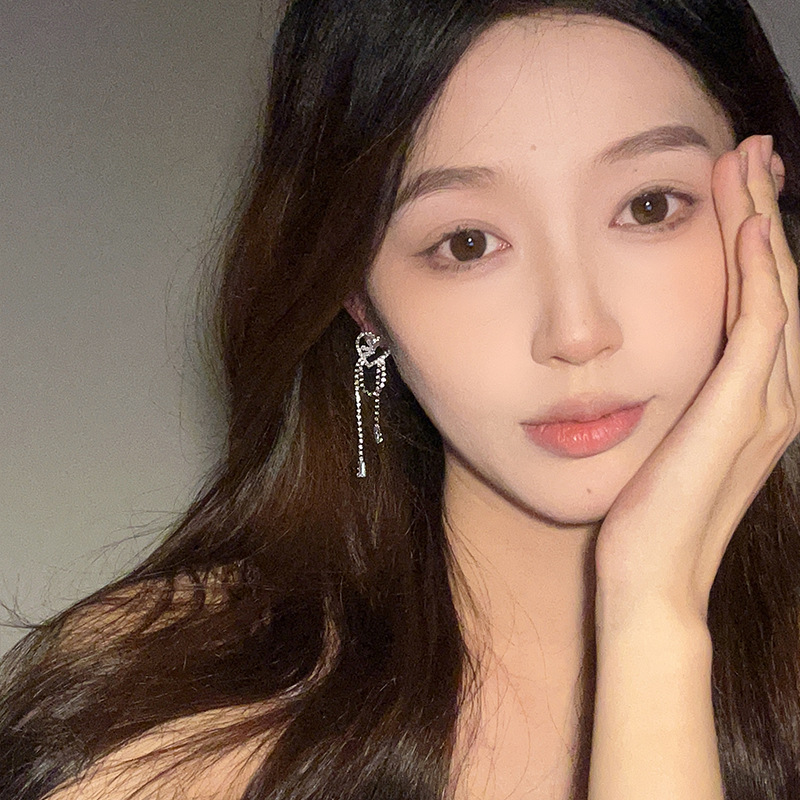 闪闪满钻爱心流苏耳环轻奢高级感耳钉女新款气质氛围感耳饰