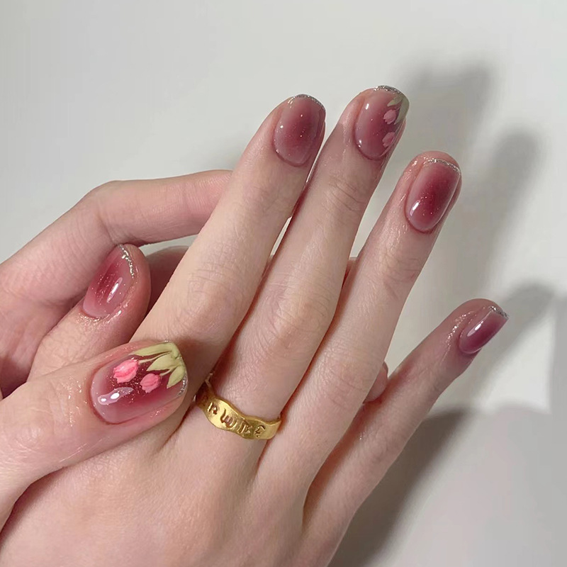 [细闪温柔郁金香]美甲贴片穿戴甲批发美甲贴片可拆卸美甲片美甲片