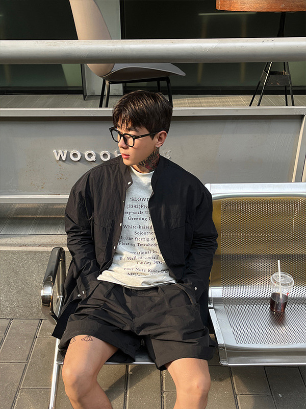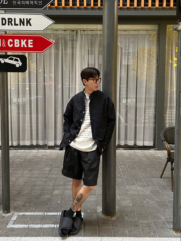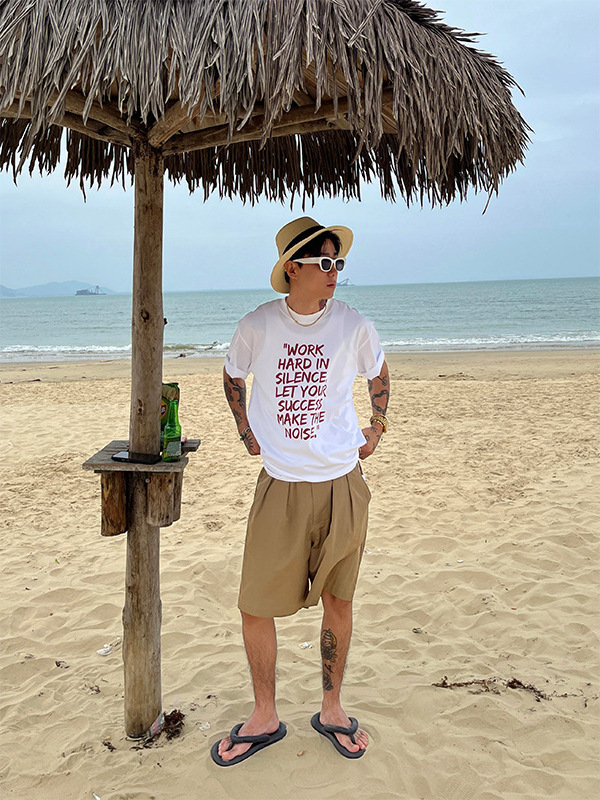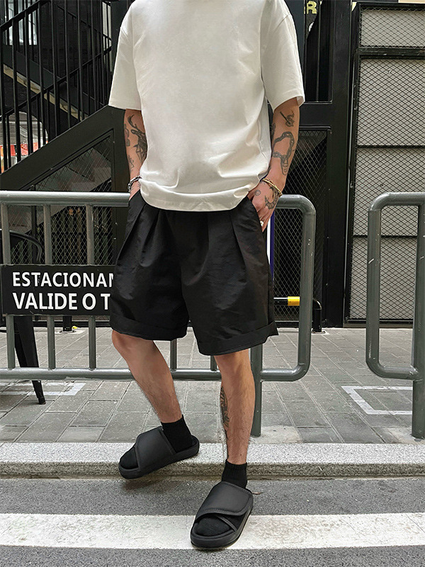夏季新款双褶设计短裤男宽松五分裤潮流休闲百搭外传美式ins裤子