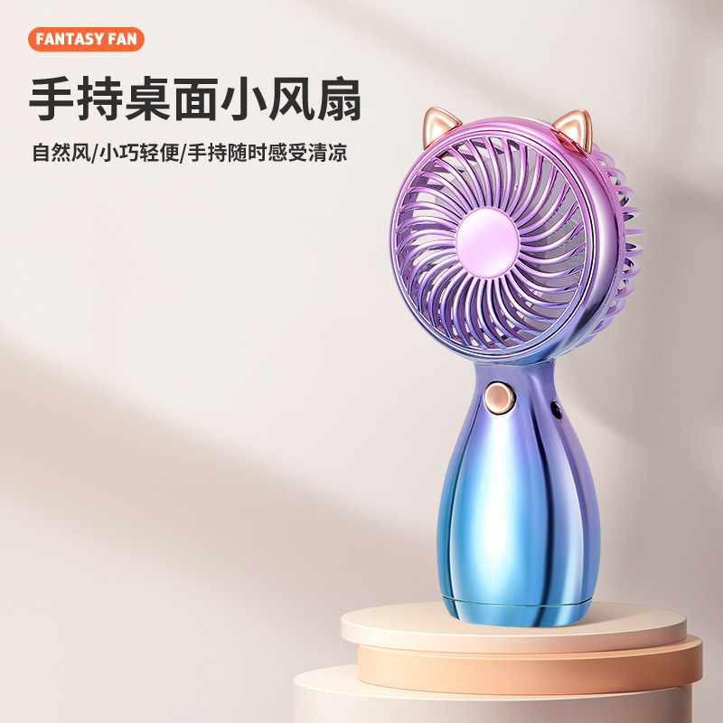 新款炫彩渐变电镀小风扇迷你外出便携式usb手持风扇可充电