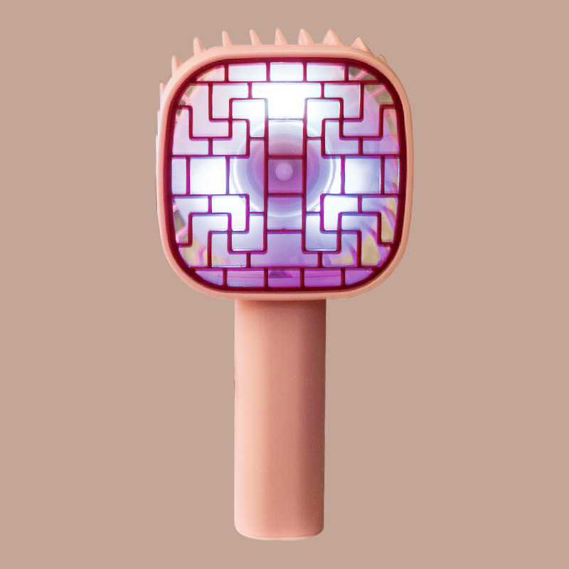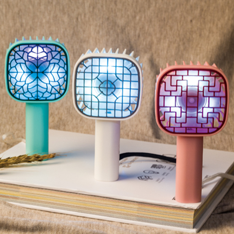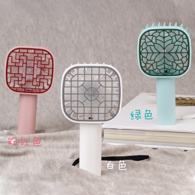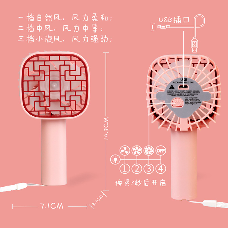 手持便携式学生风扇方网罩灯光 风扇七彩渐变手持方网罩小风扇