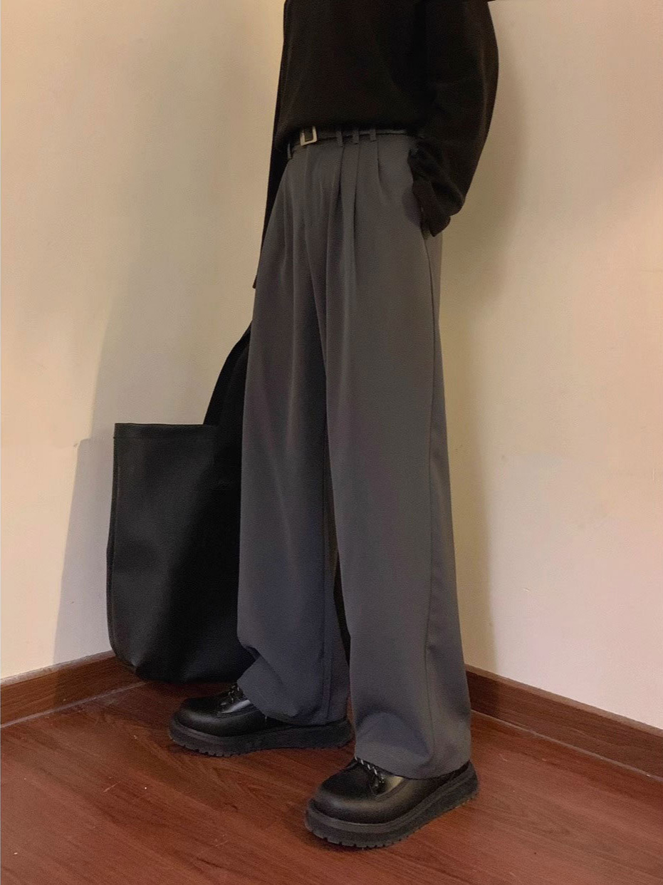 美式复古垂感休闲裤子男春秋季新款宽松青少年西裤直筒百搭长裤子