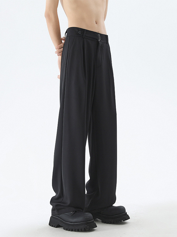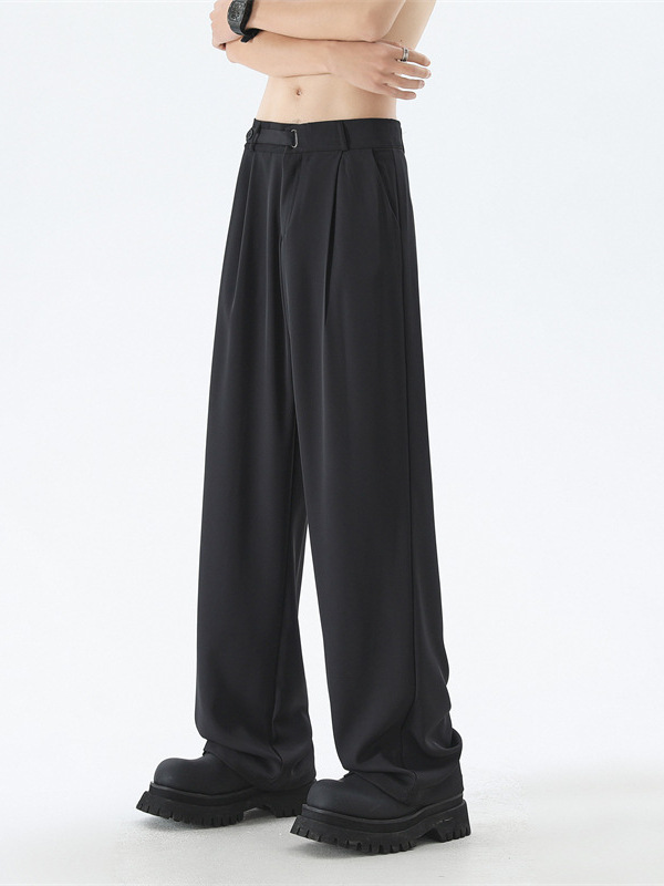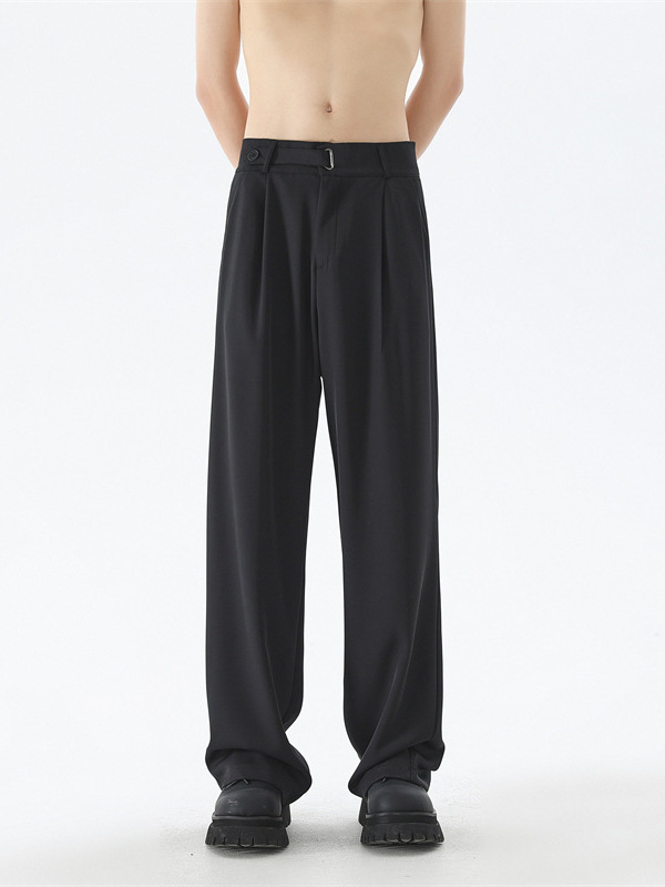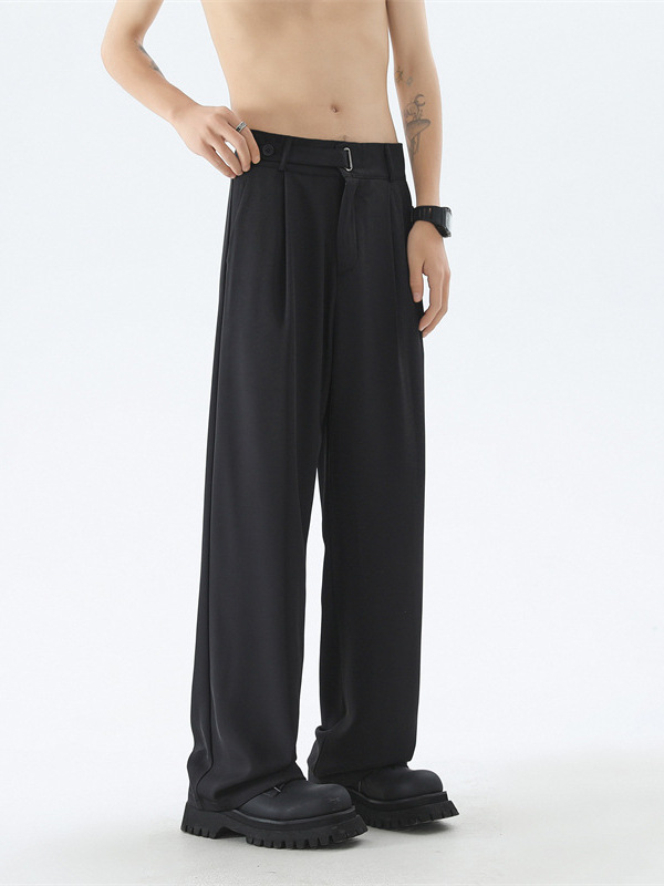 小众垂感冰丝直筒西裤男夏季新款潮牌宽松阔腿裤痞帅设计感长裤子