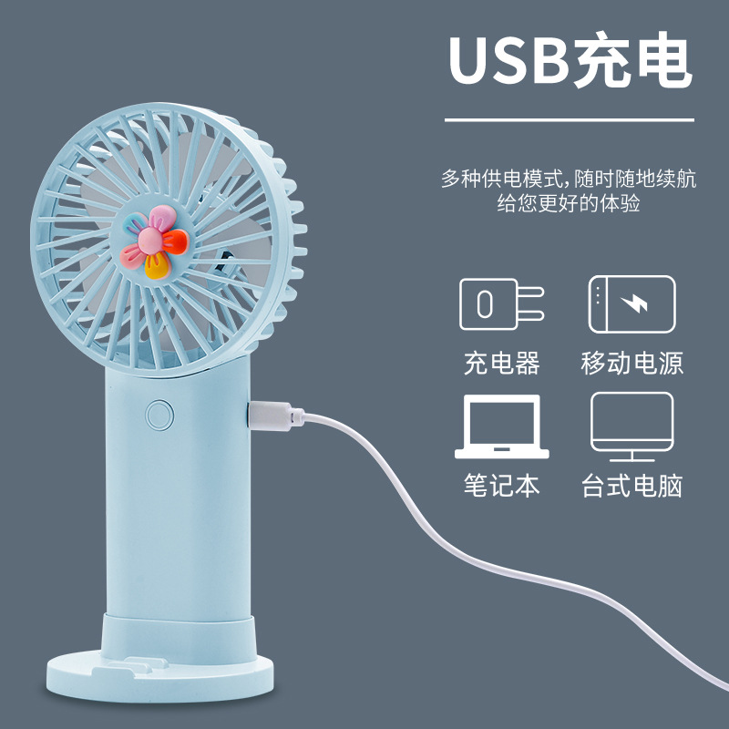 小花花手持小风扇UBS充电款迷你小风扇手机支架便携小风扇