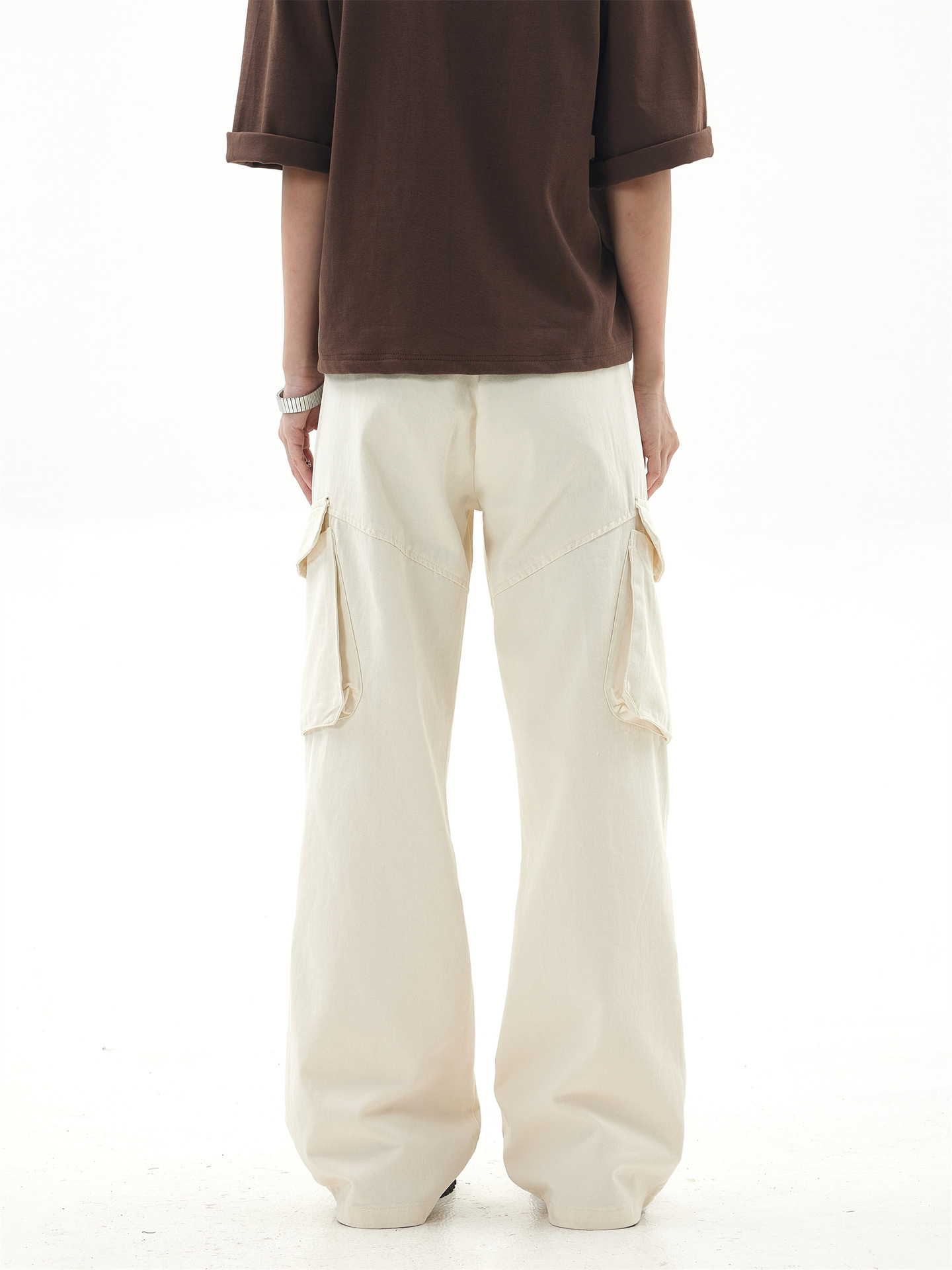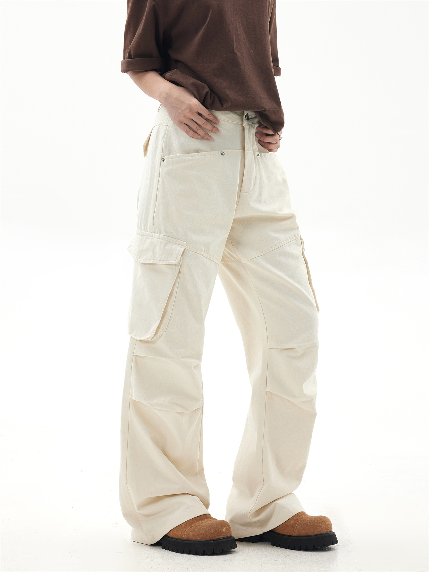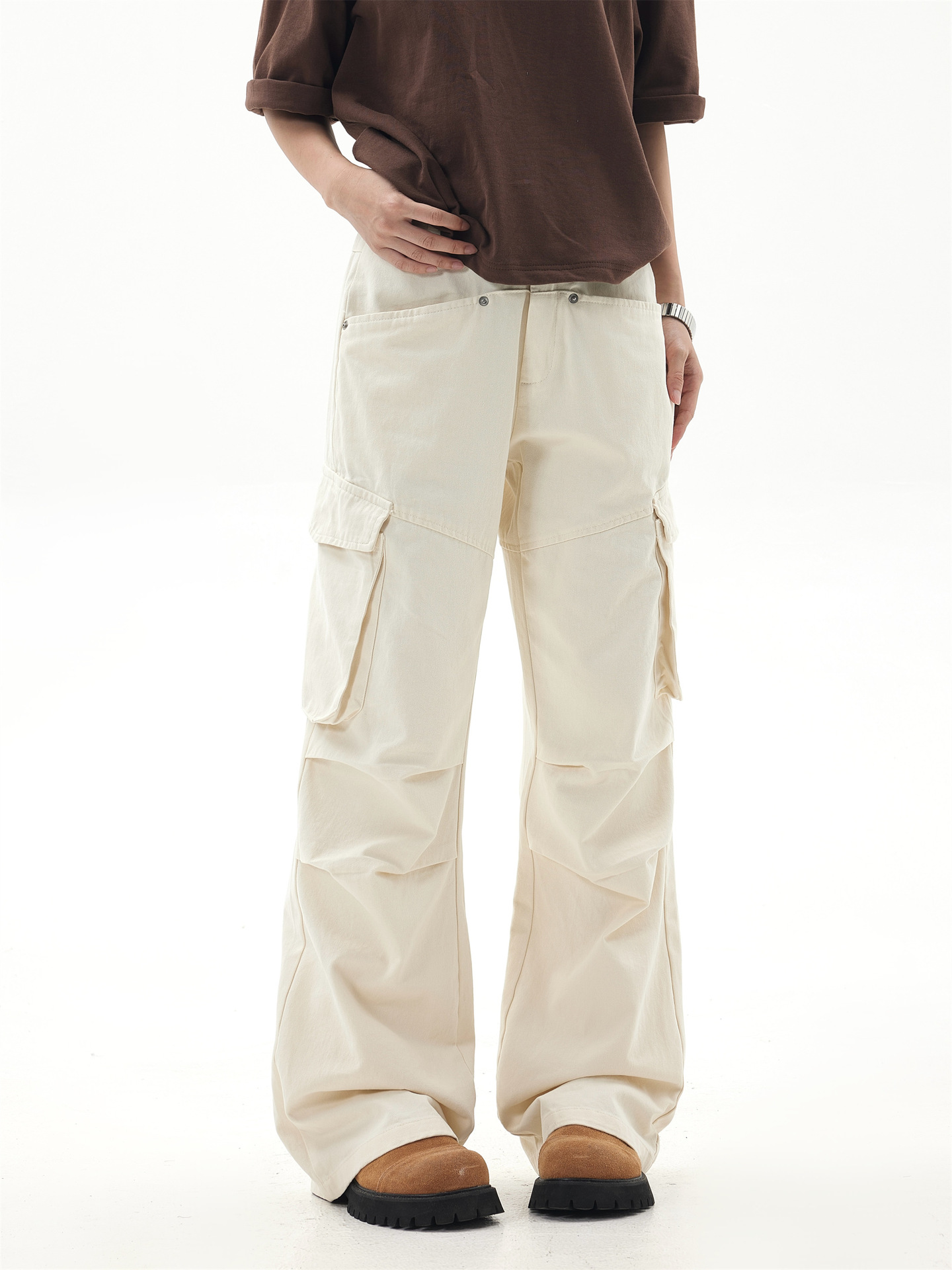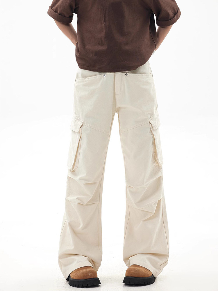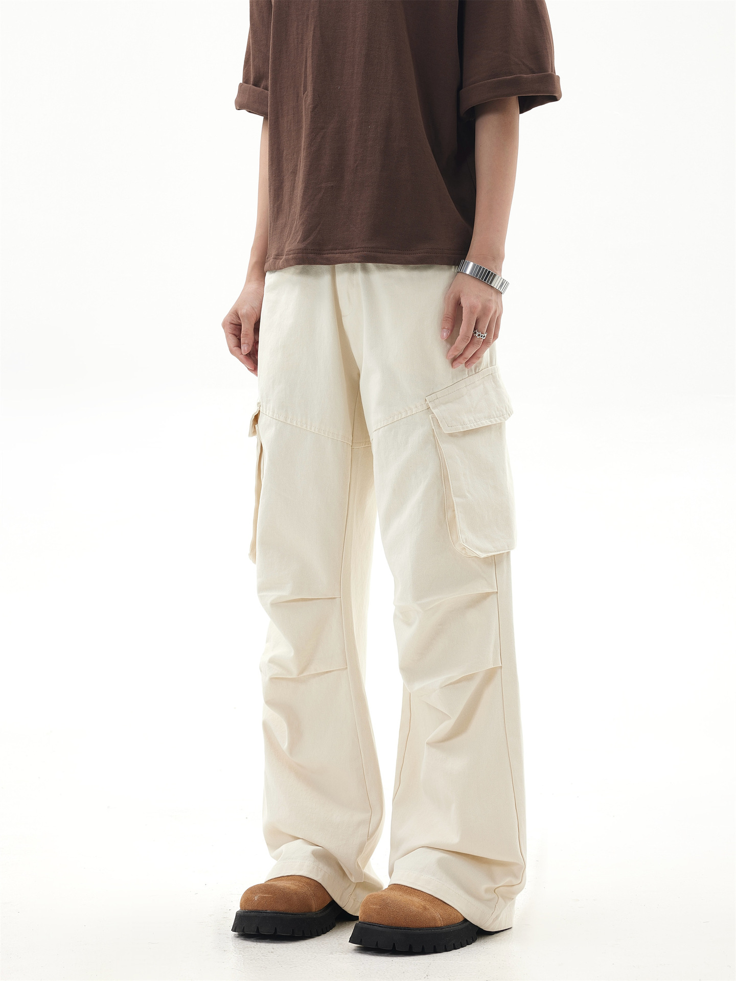 美式复古多口袋工装裤男夏季年新款阔腿褶皱直筒宽松休闲裤子