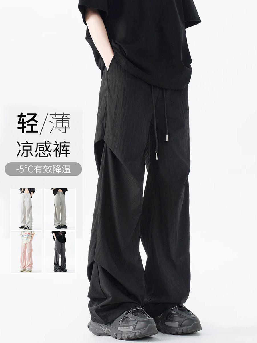 美式褶皱伞兵速干裤子男夏季新款登山户外工装高街休闲冰丝裤