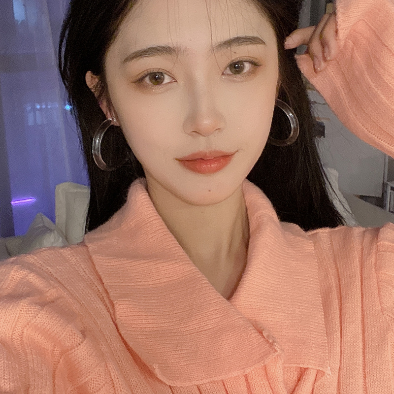 ins高级大气冷淡风C形圆圈耳环个性气质简约透明网红耳坠春夏耳饰