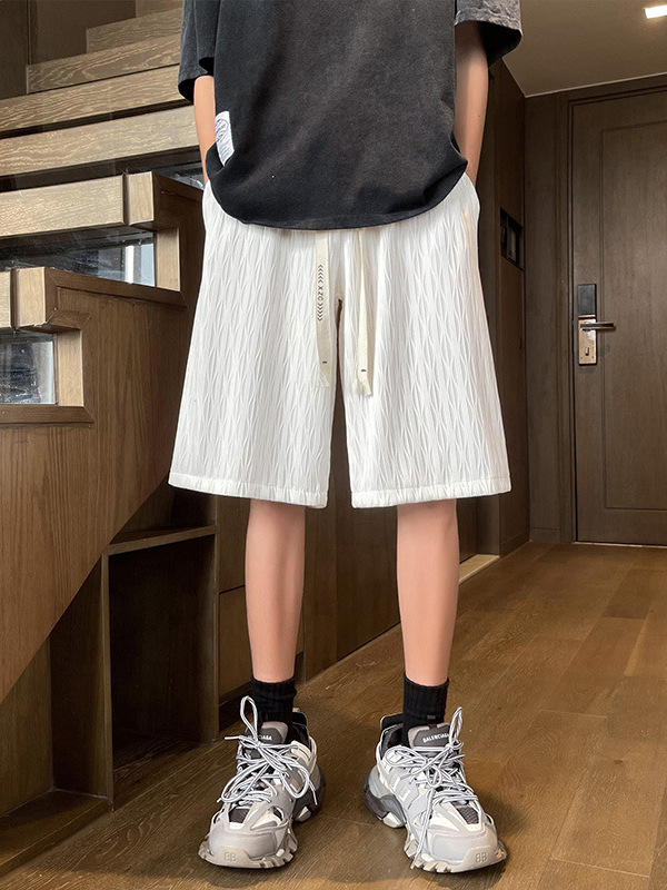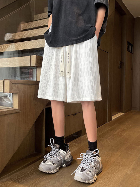 高级短裤男夏季新款速干褶皱冰丝五分裤美式潮牌宽松休闲运动裤子