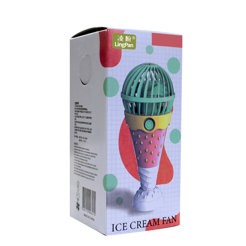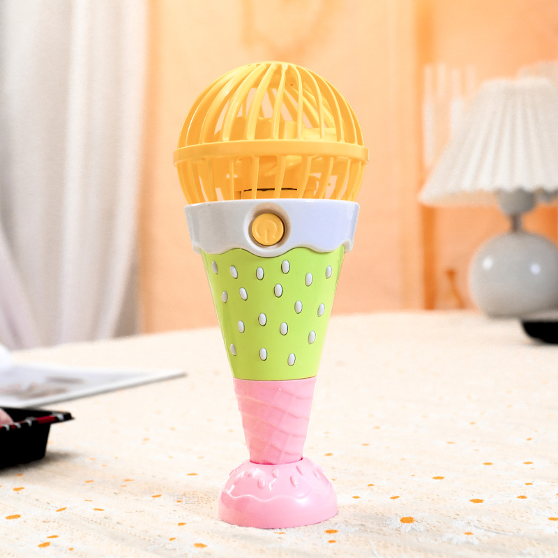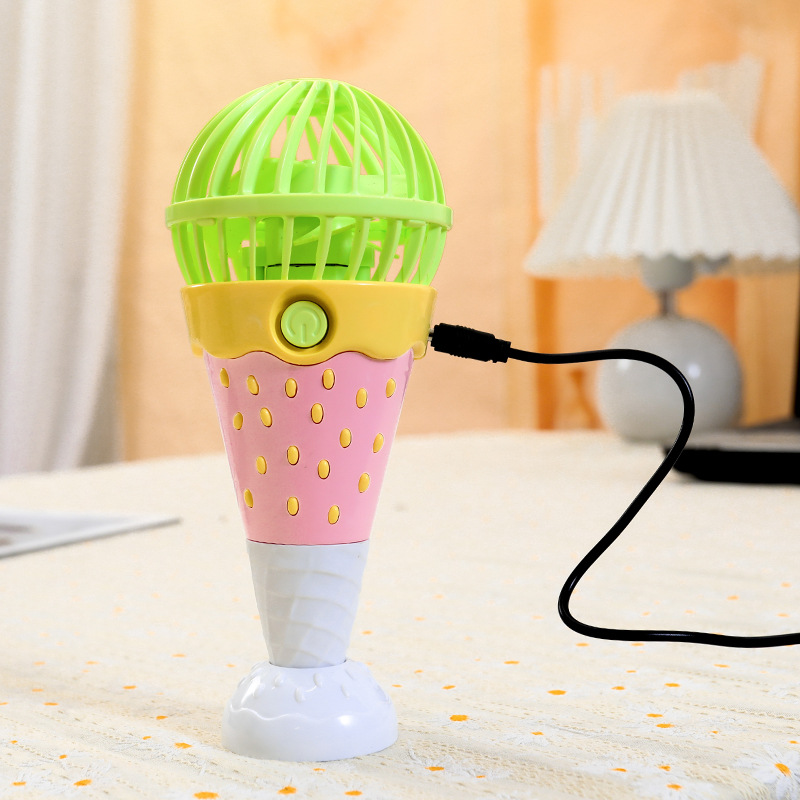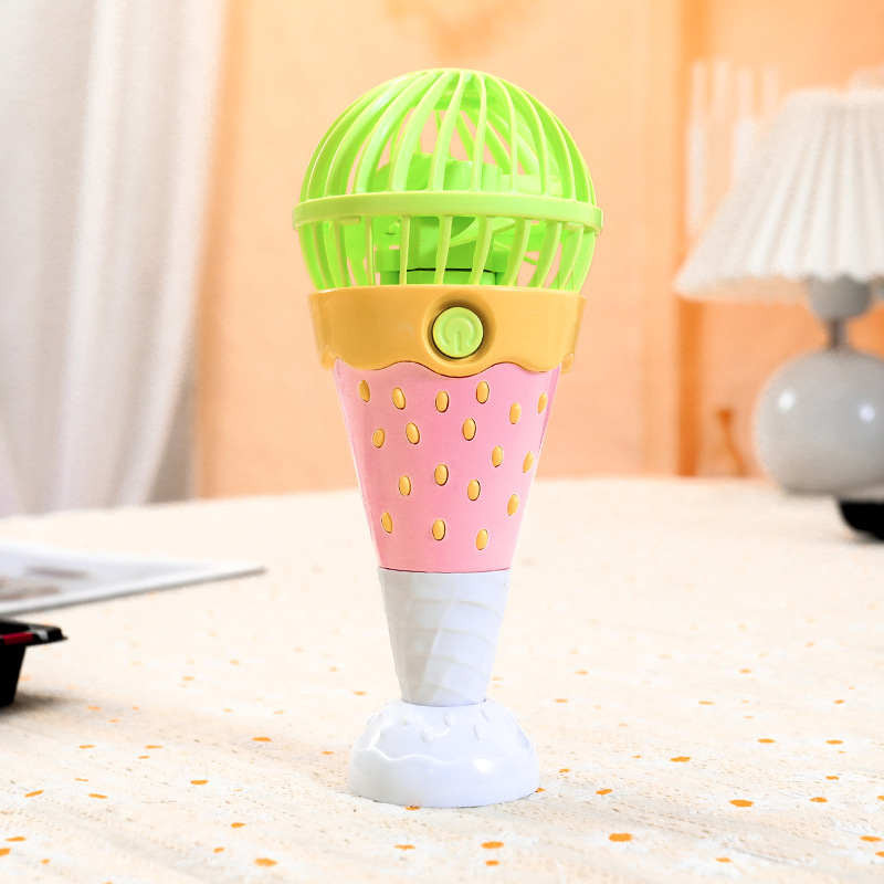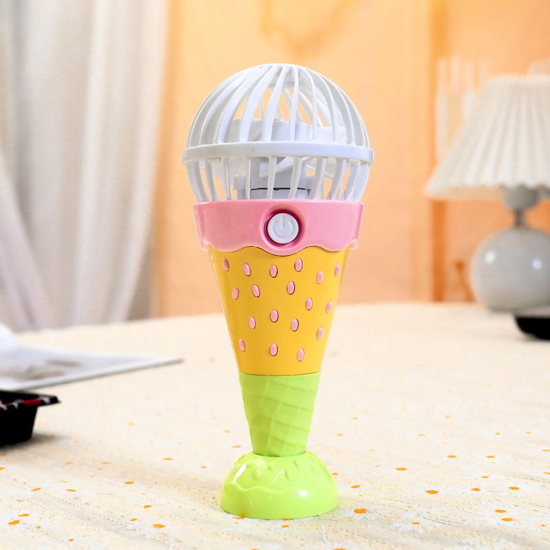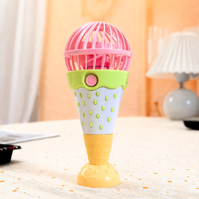 创意卡通冰激凌甜筒小风扇 充电式手持带底座电风扇生日伴手礼品
