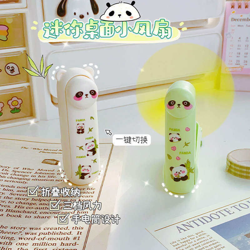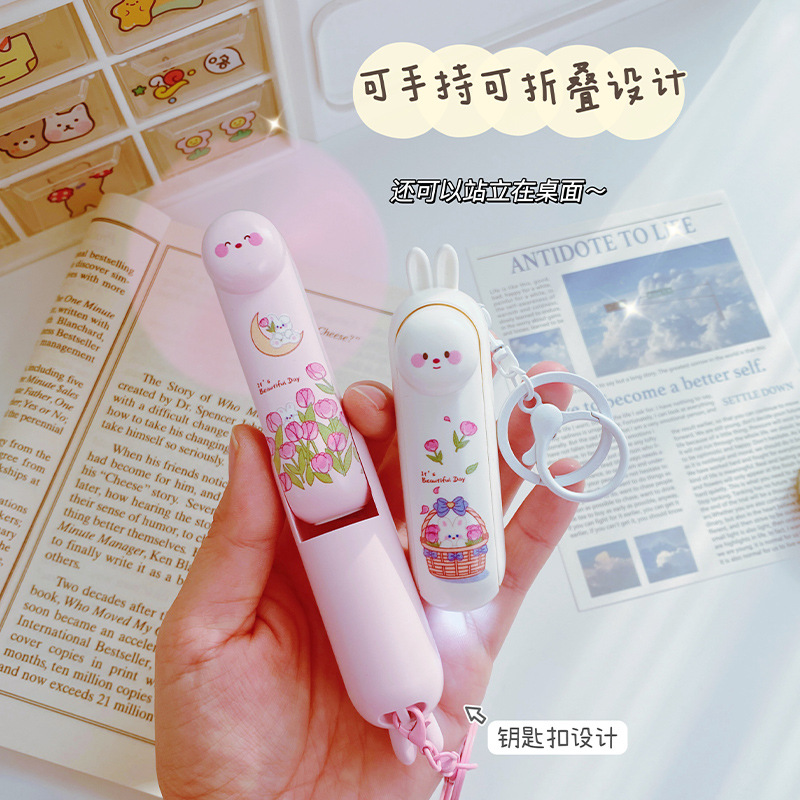 迷你折叠三档调节大风力带灯风扇 可爱便携卡通钥匙扣USB充电风扇