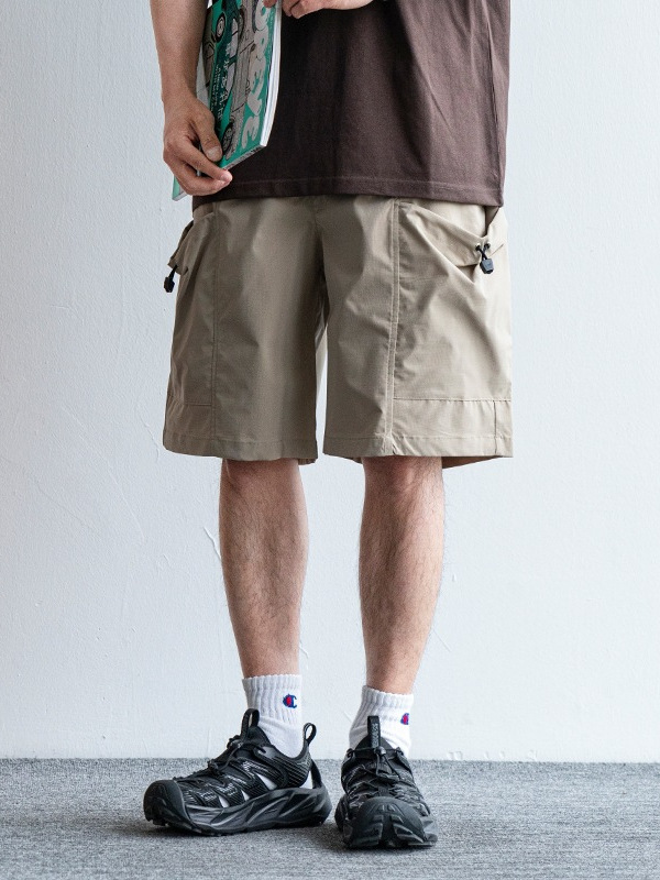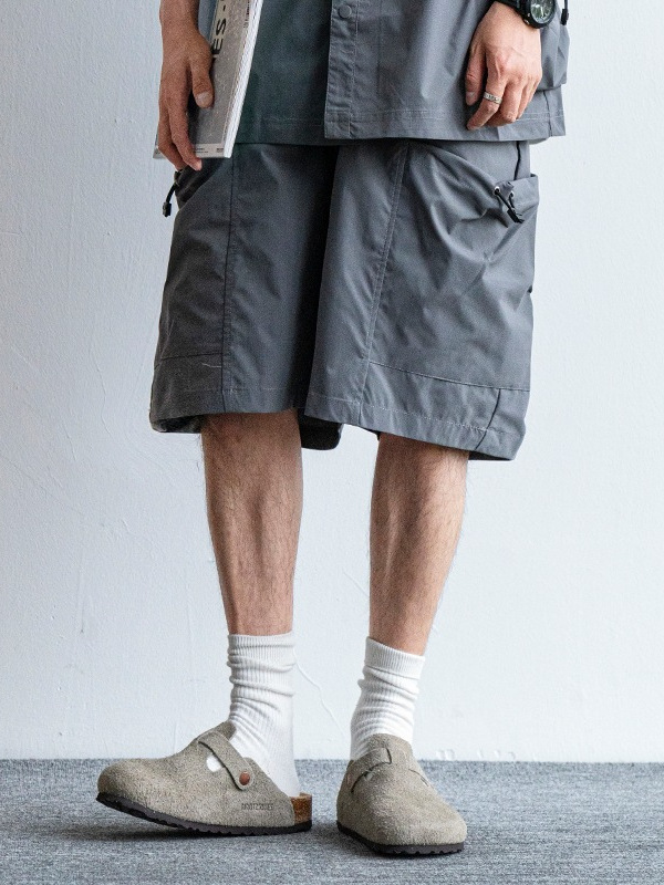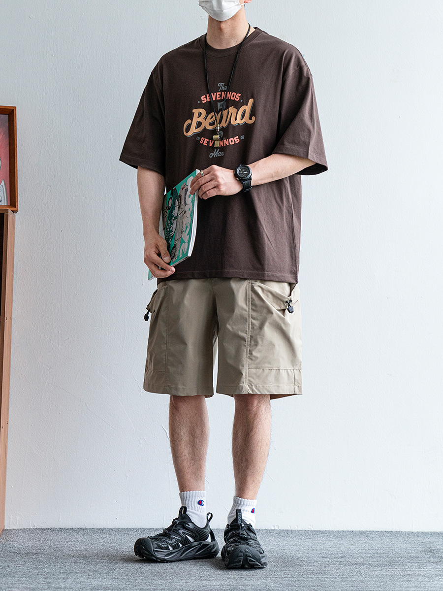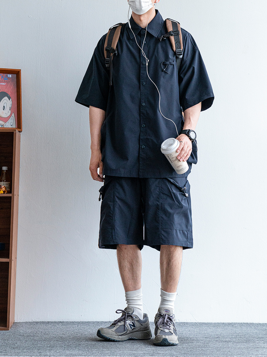 日系复古大口袋休闲短裤男夏季新款纯色宽松休闲百搭直筒五分裤潮