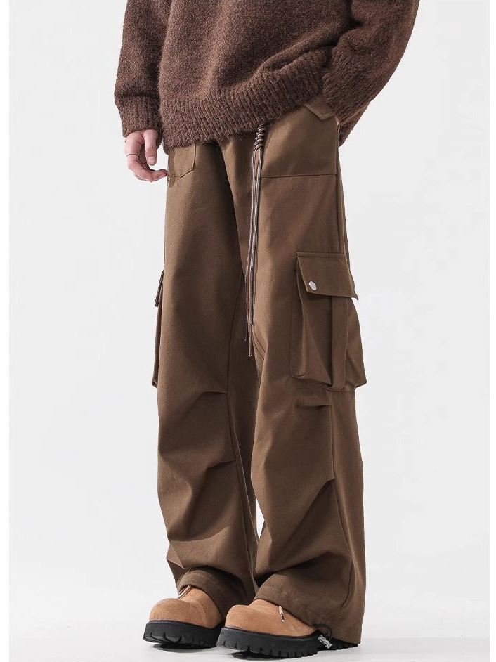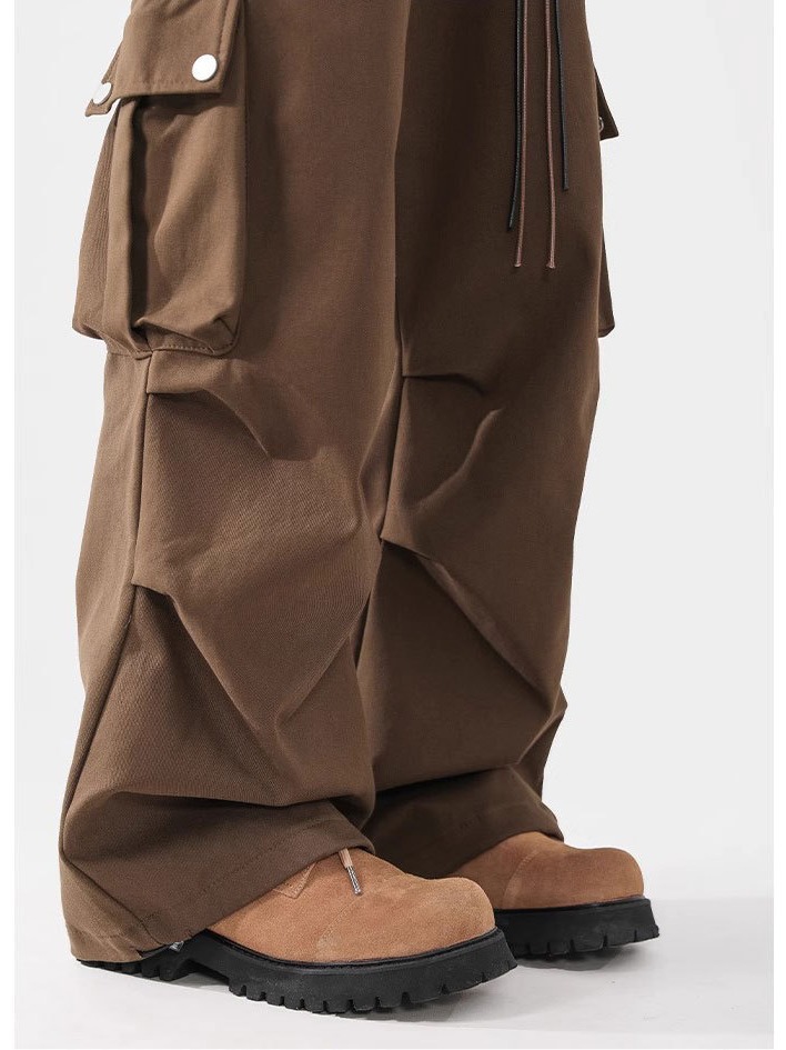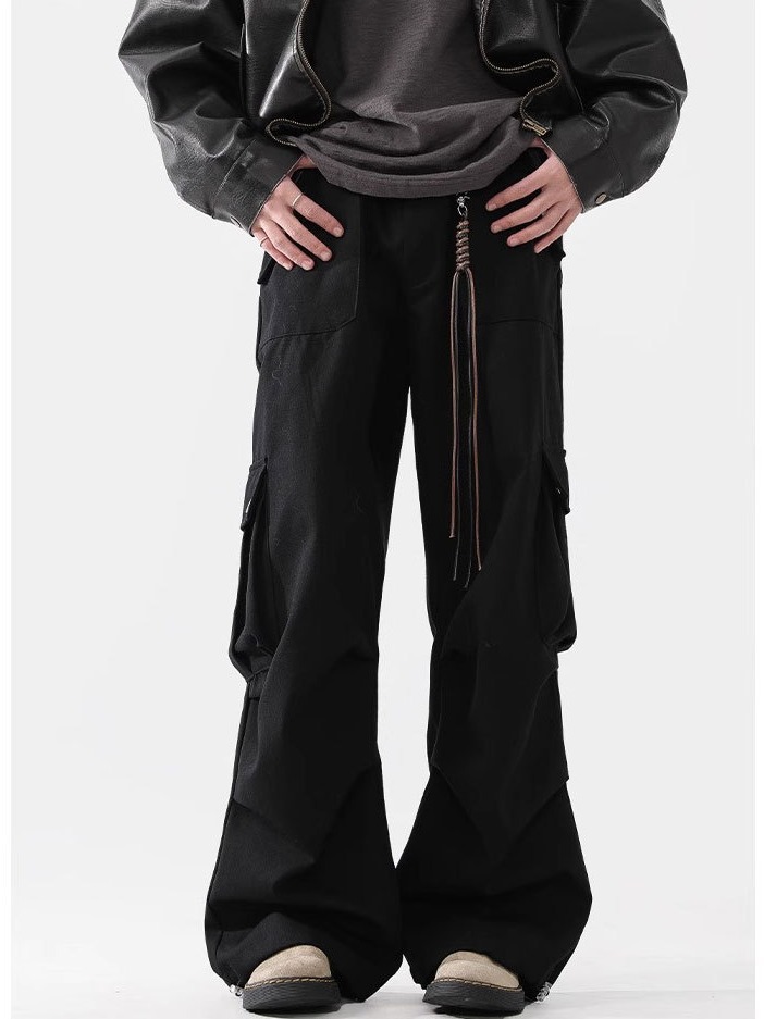 日系复古设计感褶皱休闲裤男春秋季新款宽松阔腿工装百搭裤子