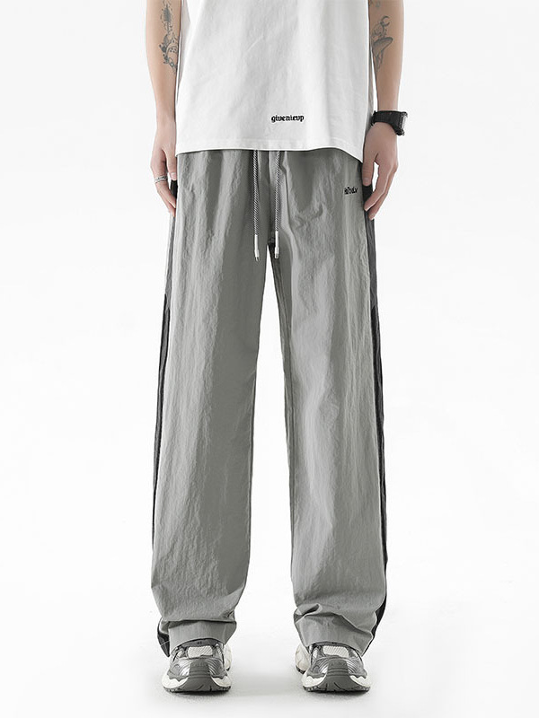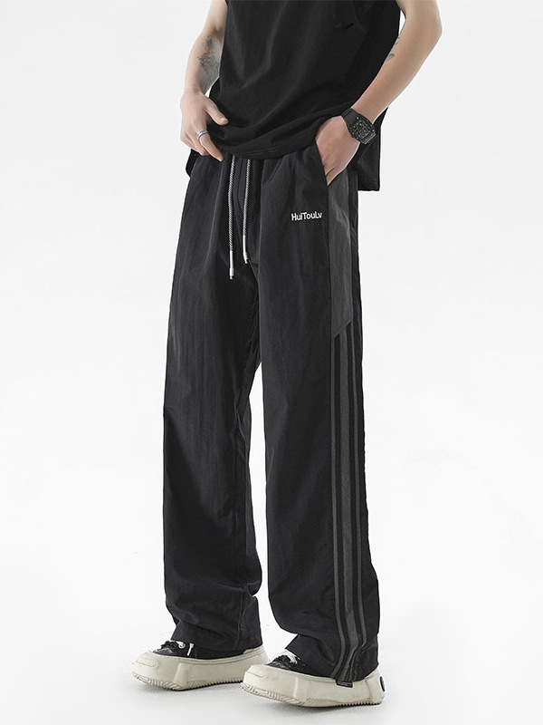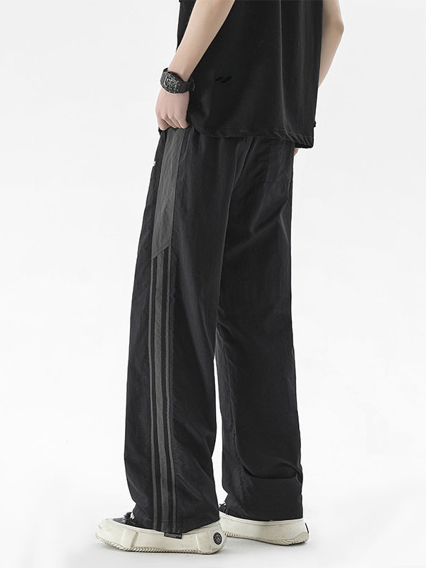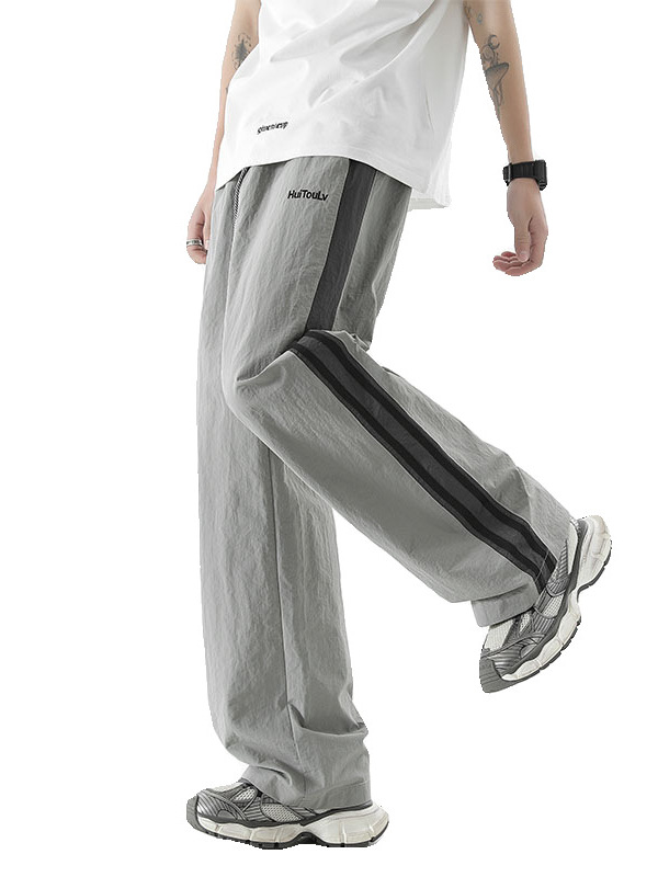 夏季新款速干裤子男美式潮牌宽松百搭直筒长裤条纹休闲运动裤