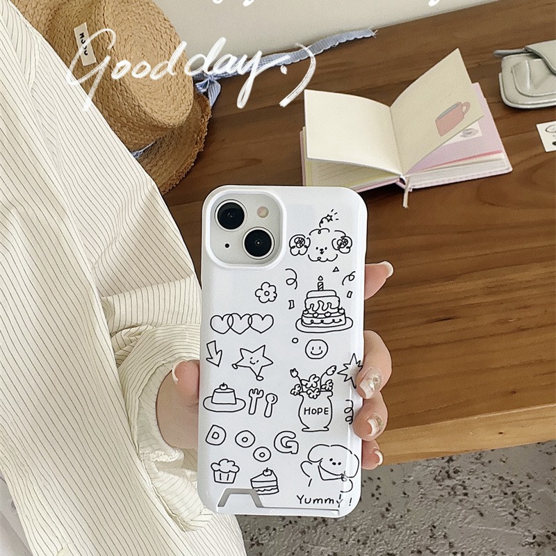菲林涂鸦蛋糕小狗适用苹果15ProMax手机壳12全包iphone13插卡14女