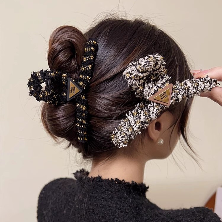 秋冬小香风字母毛绒鲨鱼夹子头饰发卡高级感发夹女后脑勺盘发抓夹
