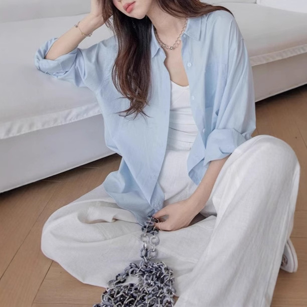 力荐!显瘦春夏白色长袖衬衫女百搭宽松设计感外穿休闲薄款防晒