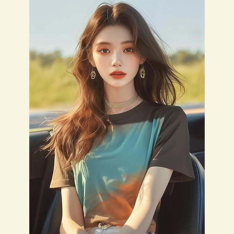 港风复古撞色圆领短袖T恤女夏新款宽松独特别致甜辣小上衣