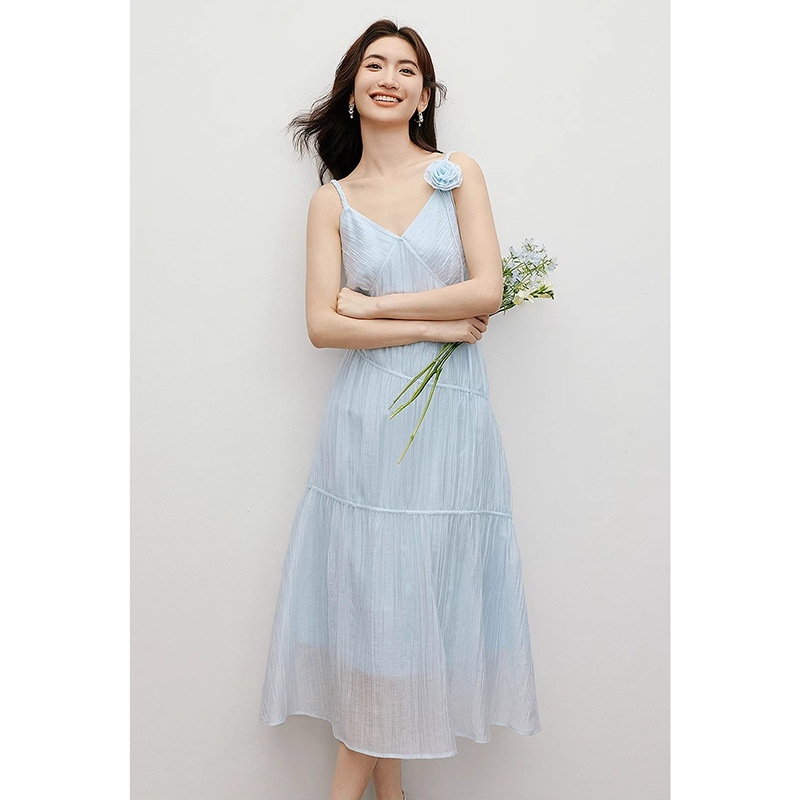 慵懒度假风连衣裙夏季新款女装收腰花朵V领吊带裙
