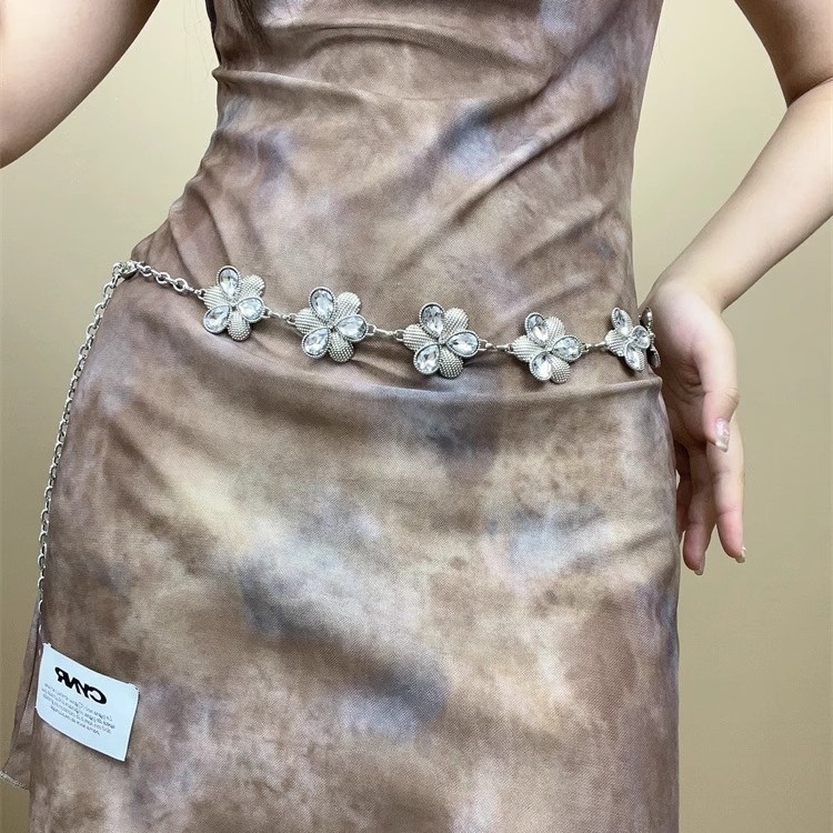水钻镶嵌花朵金属腰链女装饰连衣裙高级感配饰收腰链子腰带小香风