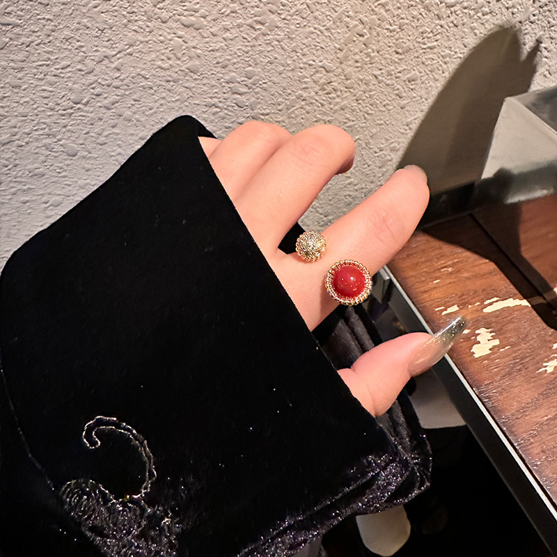 法式复古精致戒指小众轻奢高级感镶钻开口食指指环气质配饰