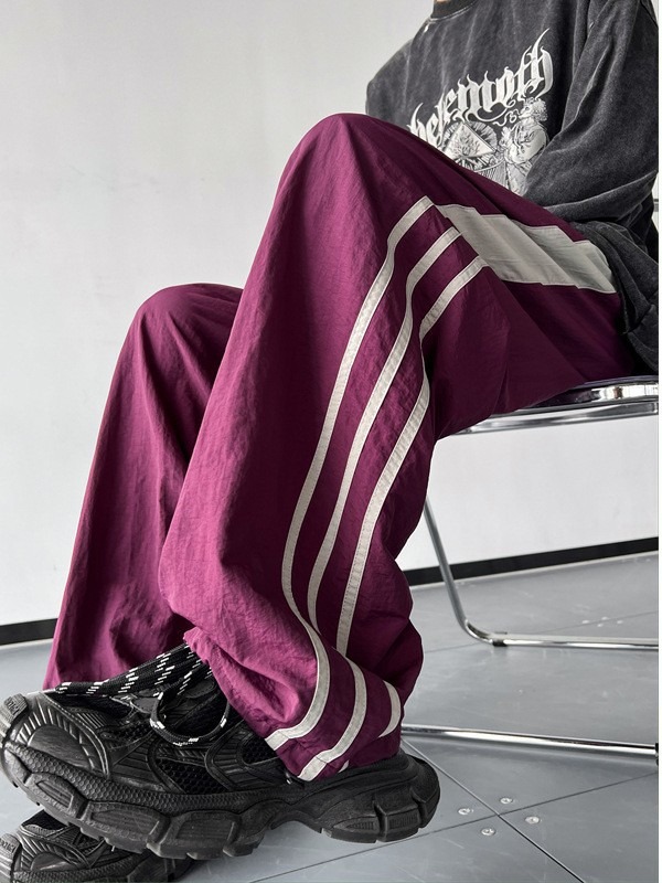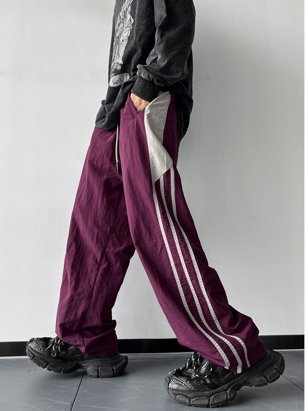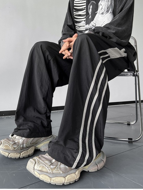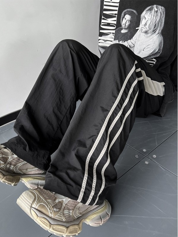 美式复古春秋阔腿oversize设计感条纹冲锋裤宽松百搭休闲长裤
