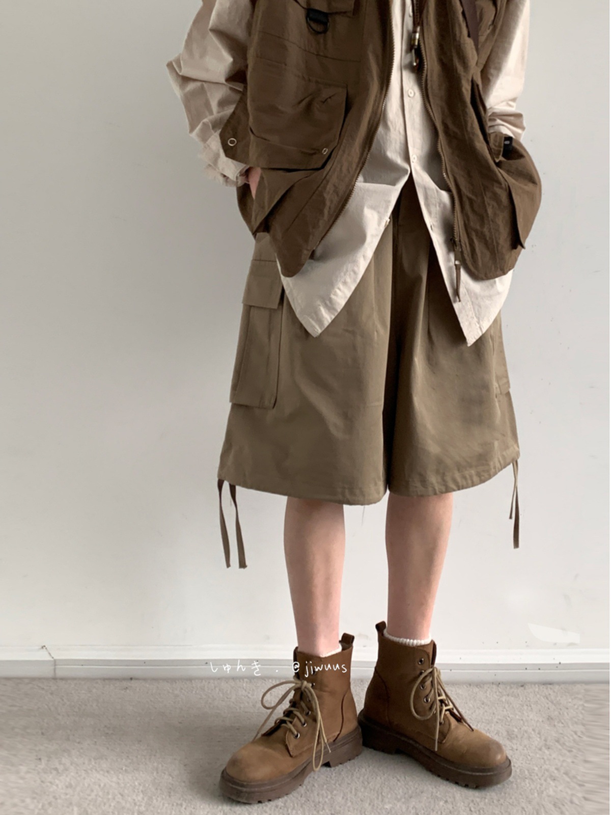 日系复古基础款工装短裤男生夏季新款宽松直筒休闲百搭短裤子