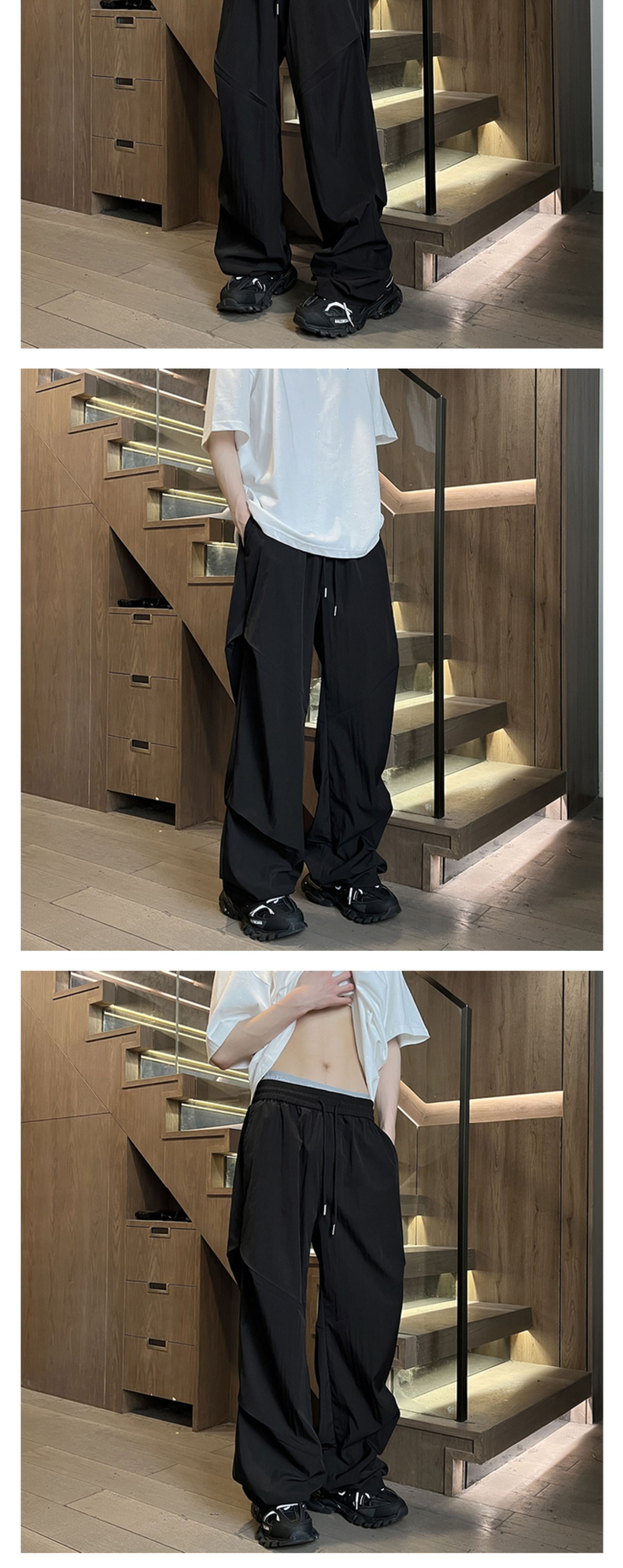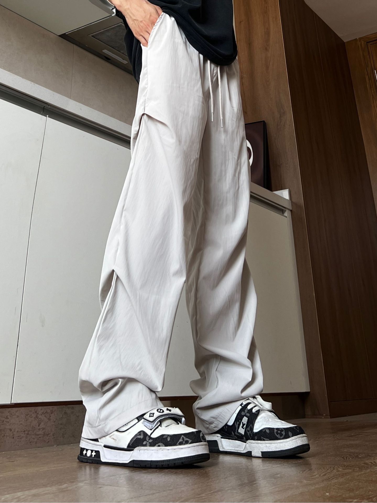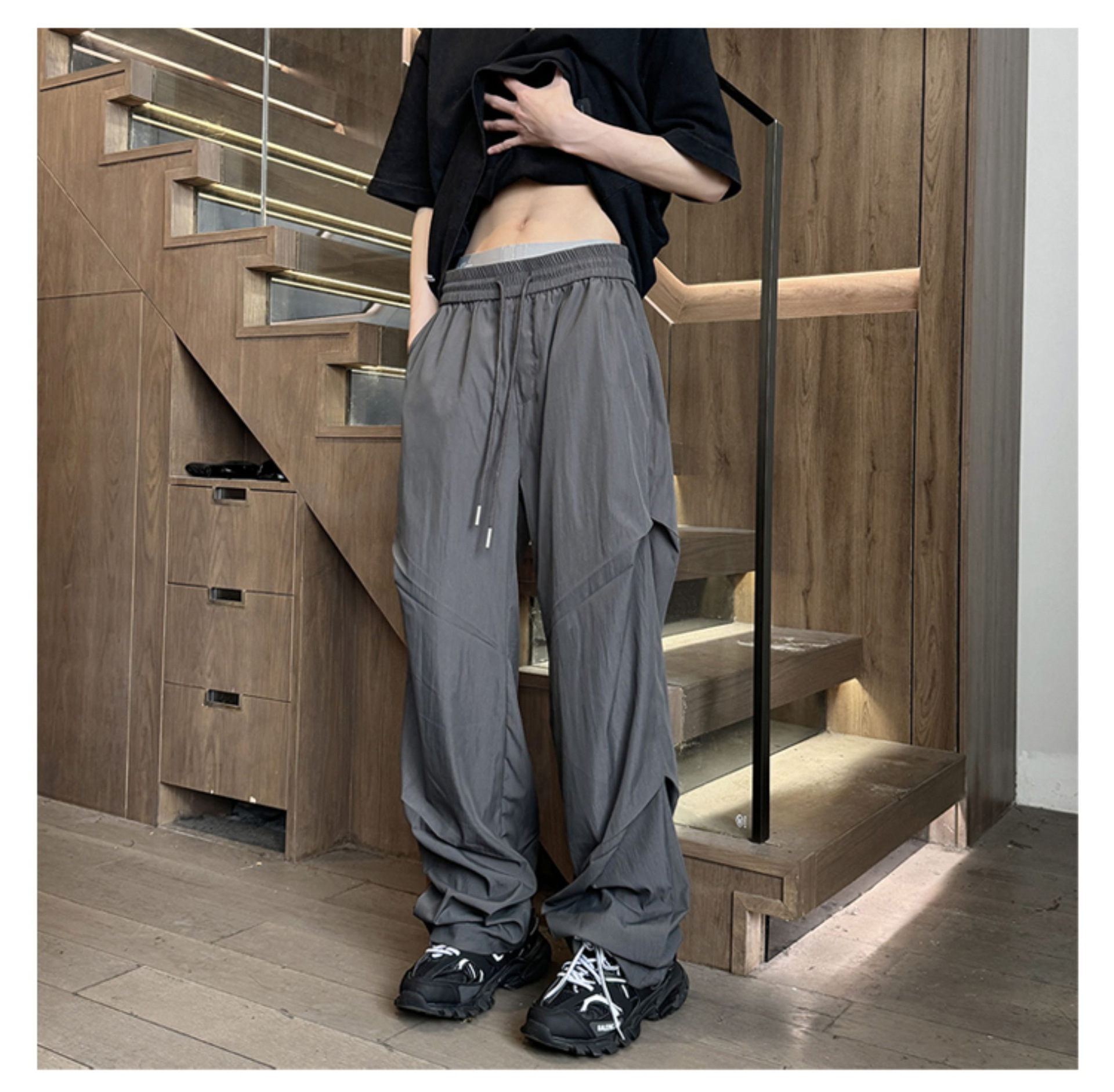 夏季冰丝凉感降落伞休闲裤直筒宽松阔腿坠垂感显瘦百搭男潮流