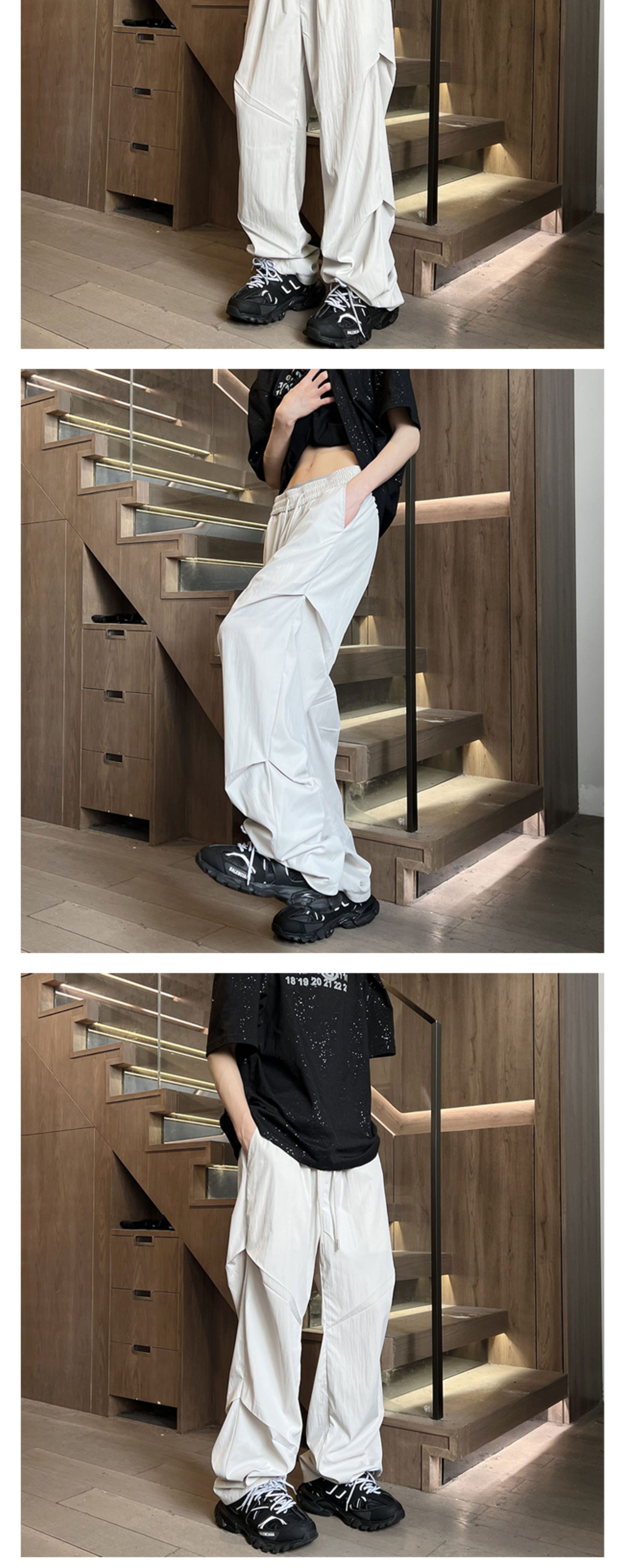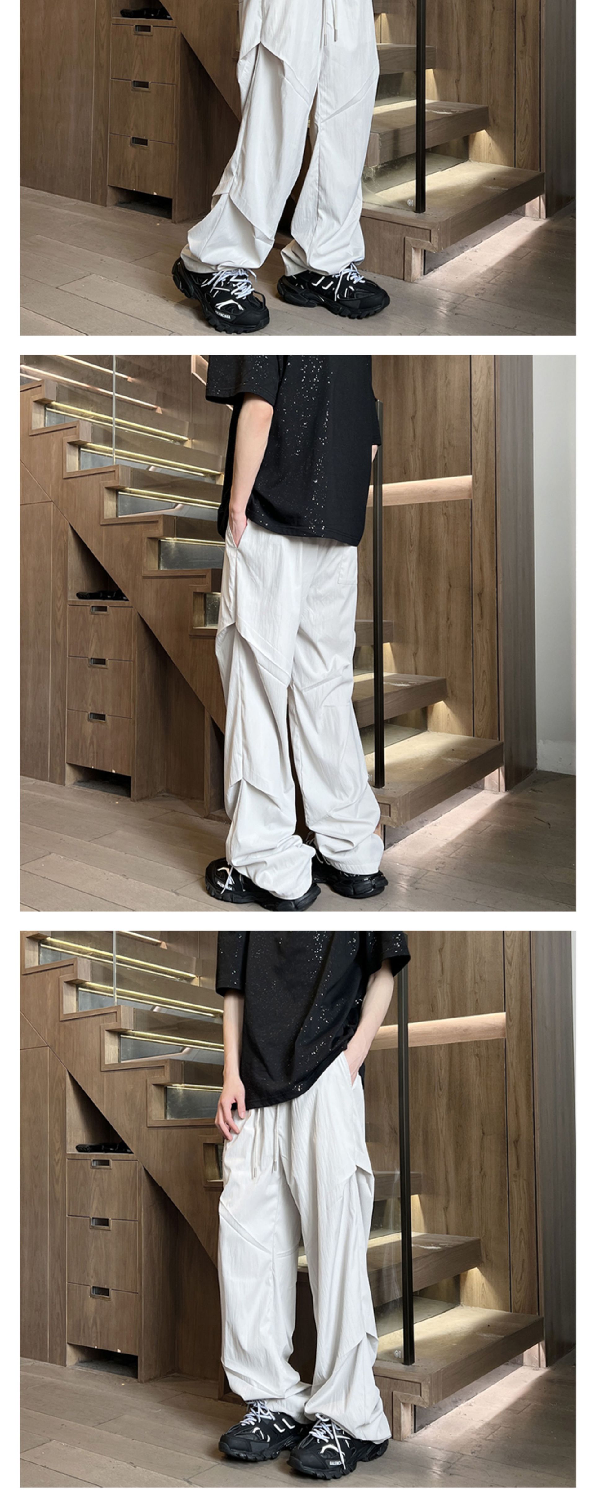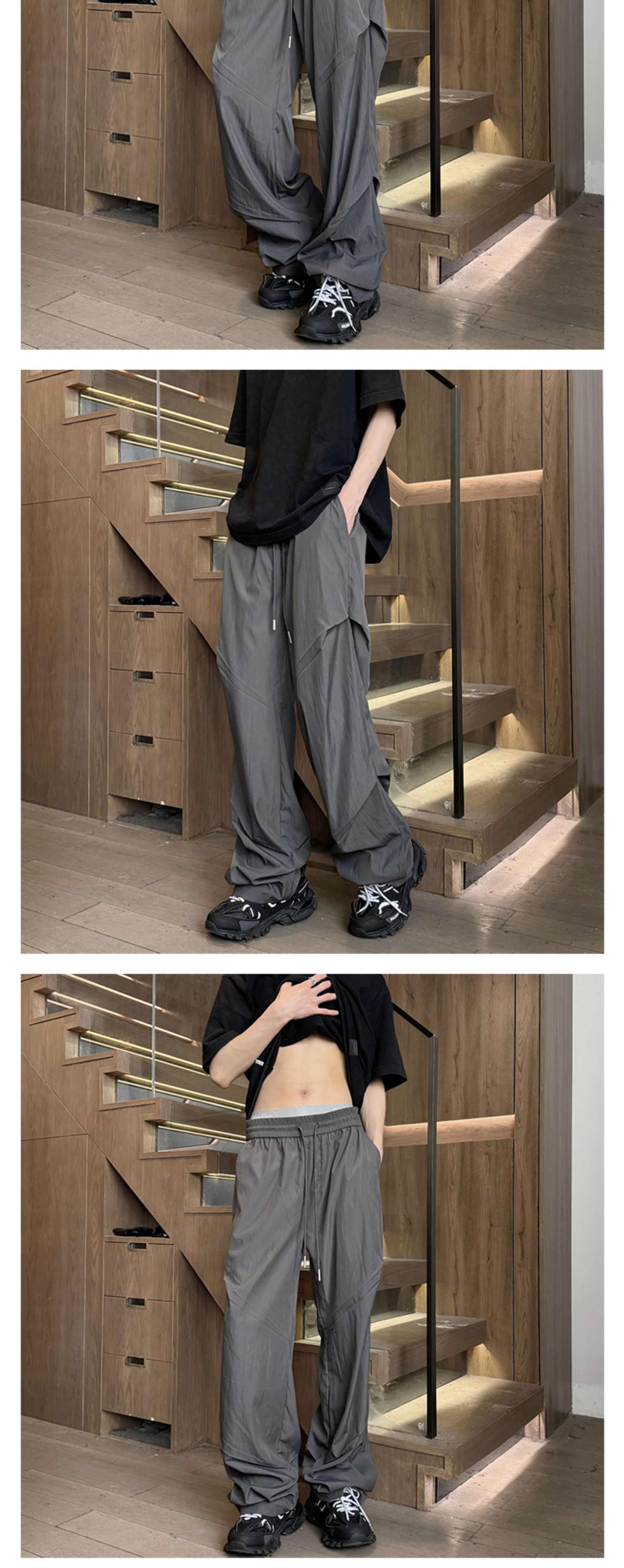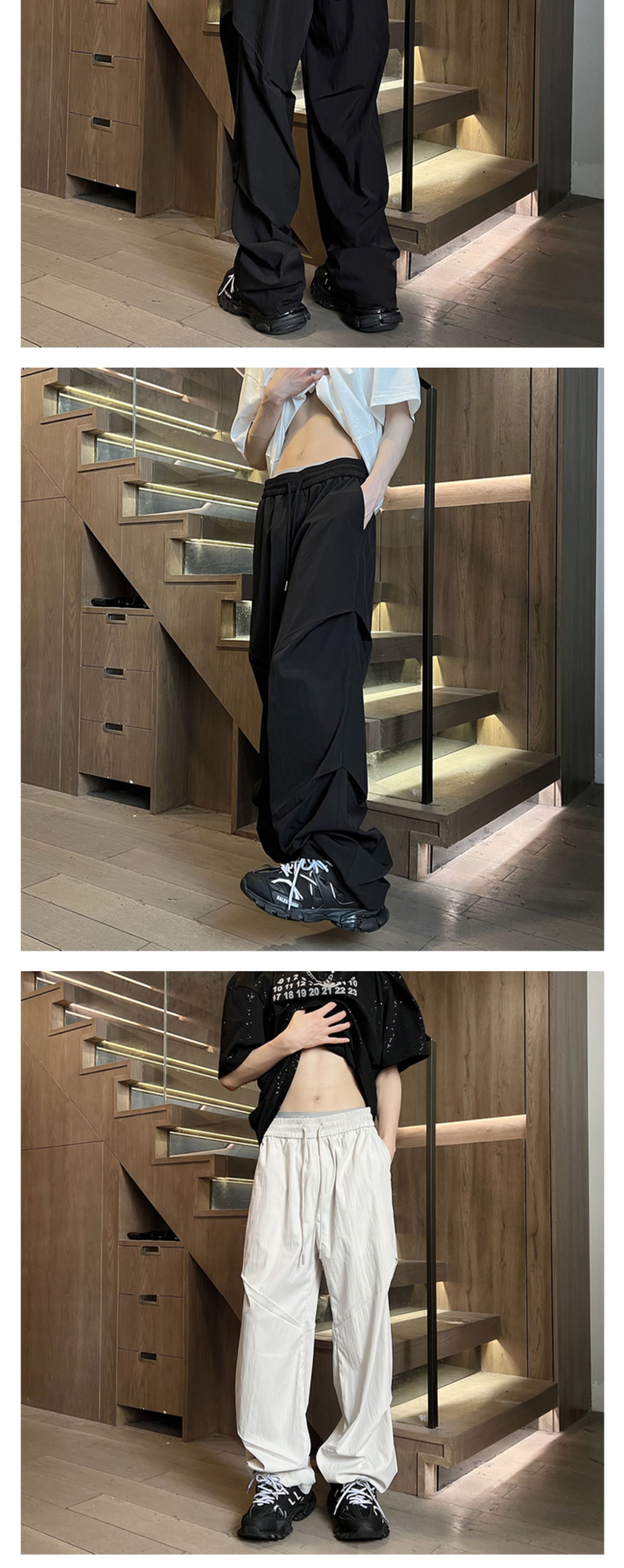 夏季冰丝凉感降落伞休闲裤直筒宽松阔腿坠垂感显瘦百搭男潮流