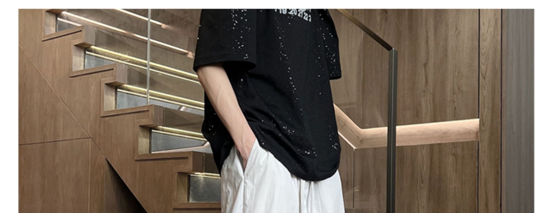 夏季新款拼接拼色短袖T恤男士日系复古宽松百搭透气半袖体恤上衣