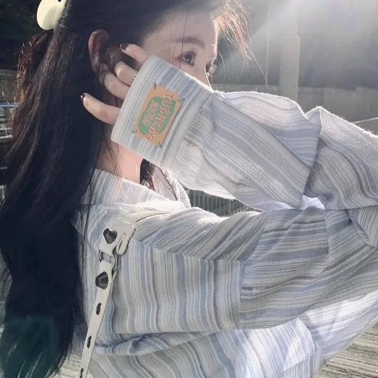 薄款防晒衬衫上衣女夏季新款设计感宽松慵懒长袖蓝色条纹休闲衬衣