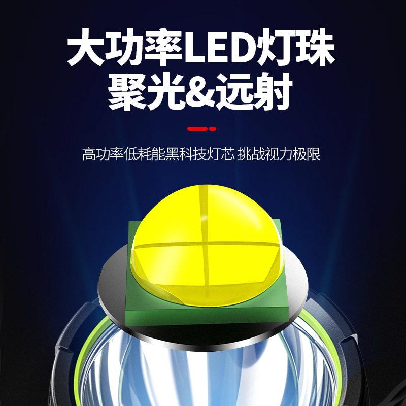 手电筒户外强光LED大功率巡逻应急手提探照灯USB充电带侧灯手电