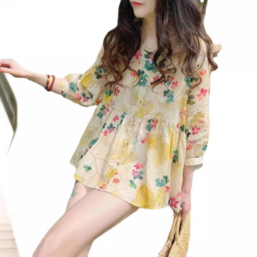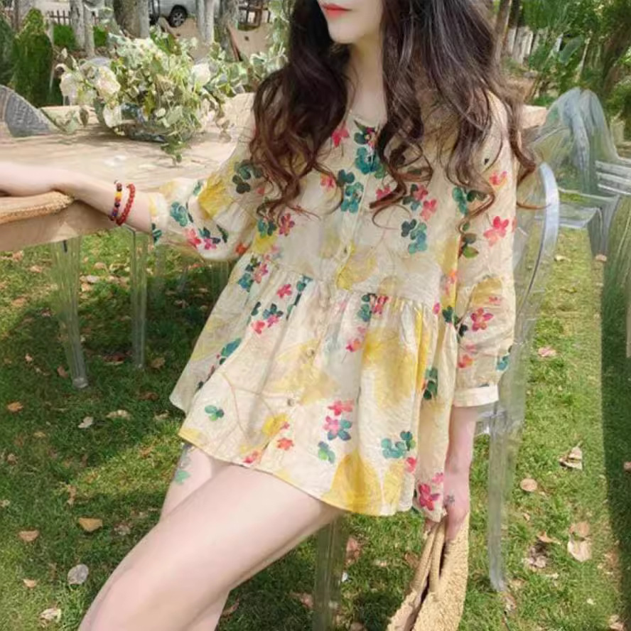 小个子设计小众碎花清新甜美森系风春季法式甜美女装衬衣宽松别致
