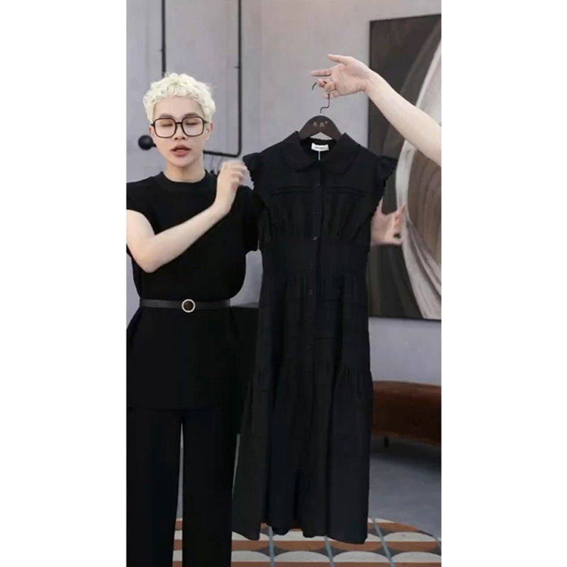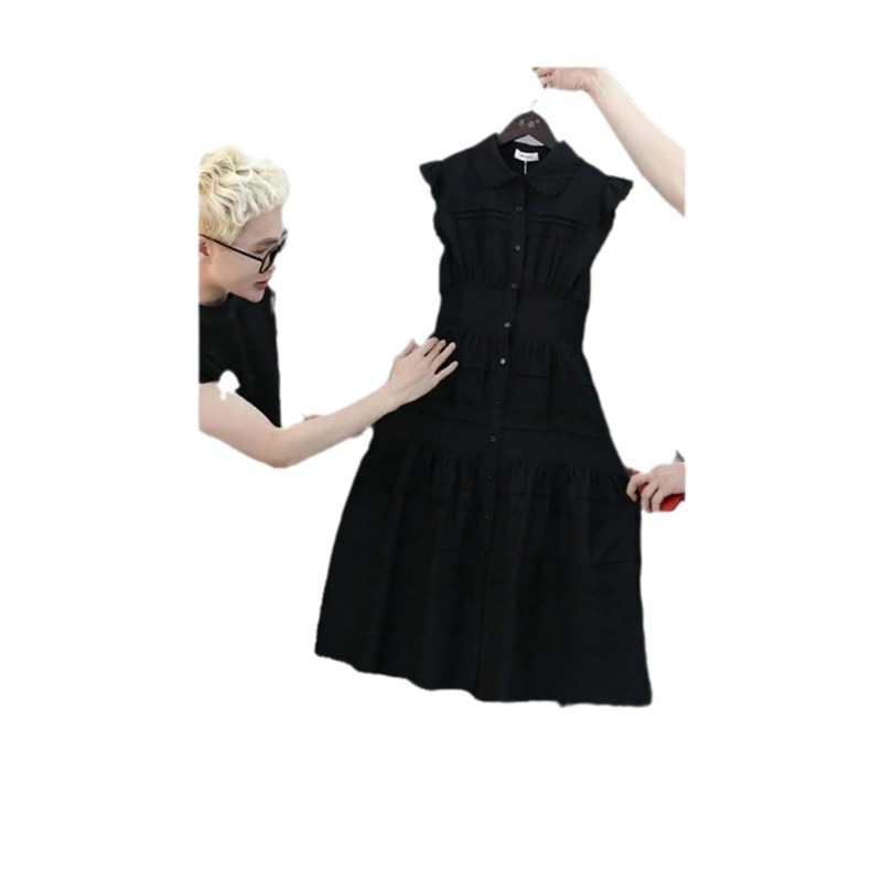 年夏季新款女装法式轻奢气质小黑裙赫本风黑色小飞袖连衣裙女