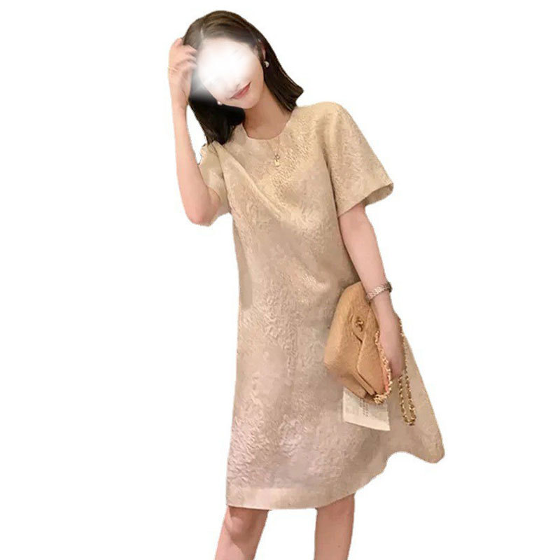 年夏季法式名媛小香风女装设计感甜美轻熟提花遮肉显瘦连衣裙