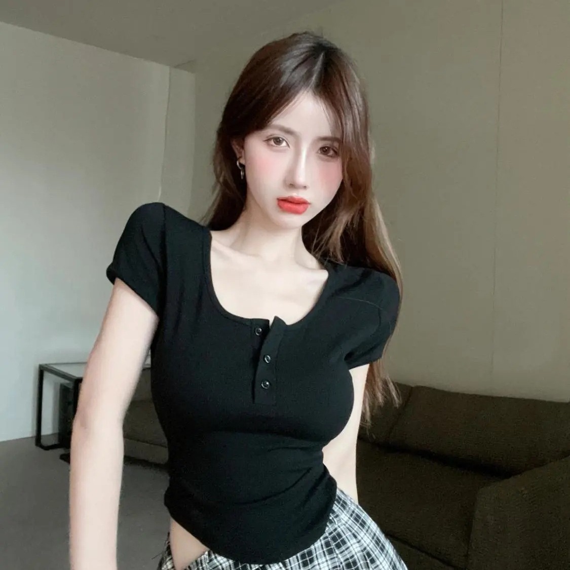 纯欲风正肩小众T恤女短袖bm风夏季新款修身显瘦辣妹甜美短款上衣