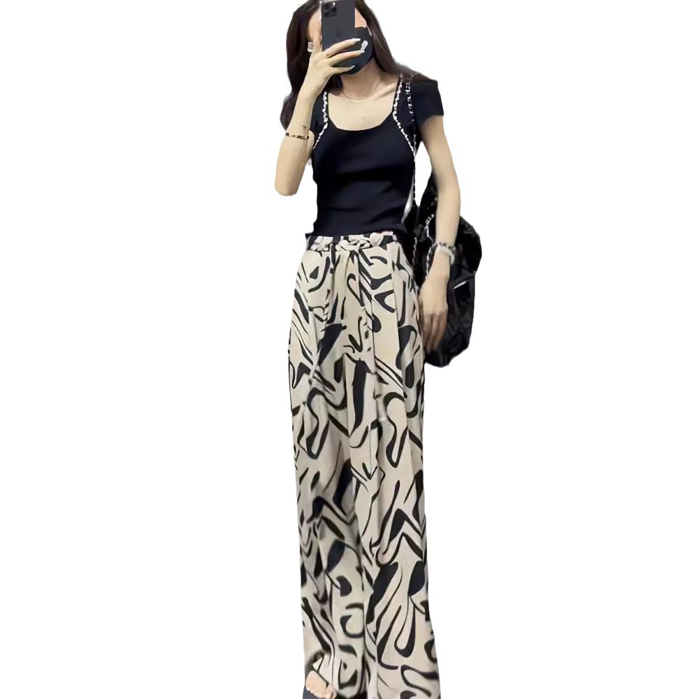 欧货时尚休闲运动套装夏季新款洋气减龄烫钻上衣阔腿裤两件套