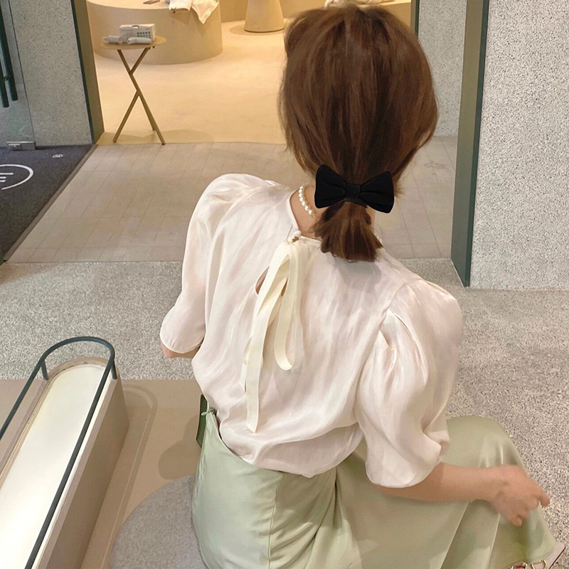法式小飞袖白色格子衬衫小众女夏季甜美短款娃娃衬衣别致小衫上衣
