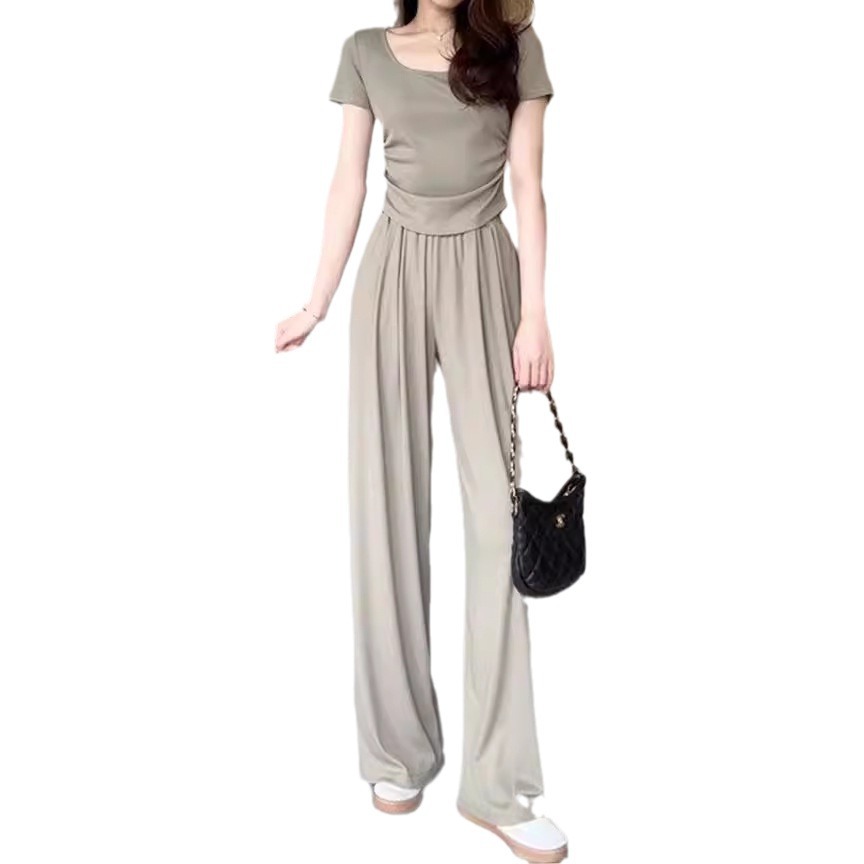 时尚休闲运动套装女夏季新款小个子显瘦短袖t恤直筒裤两件套