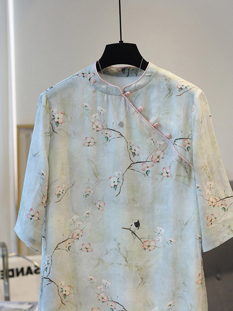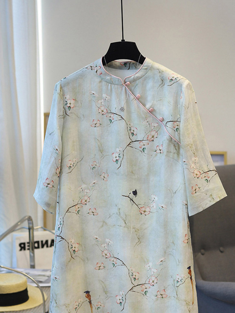 夏季新款新中式连衣裙女夏汉元素国风改良旗袍宽松显瘦长裙子