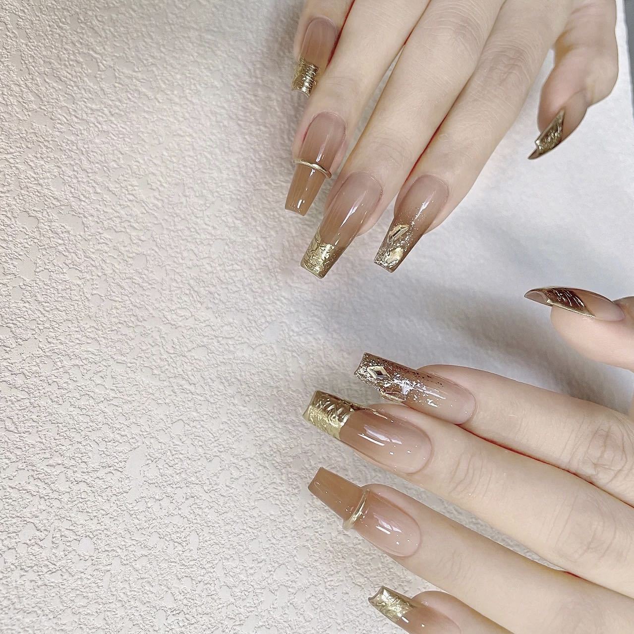 纯手工光疗美甲广岛冰茶穿戴甲批发成品重复使用美甲贴片可拆卸美