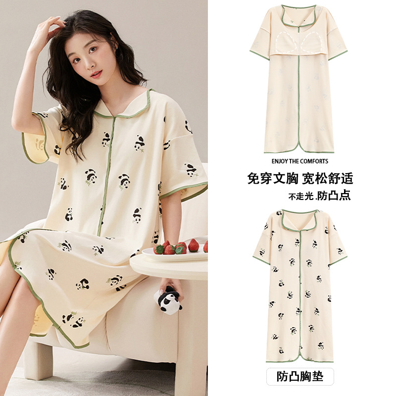 夏季睡裙带胸垫睡衣女短袖宽松休闲女士棉质夏天可外穿卡通家居服