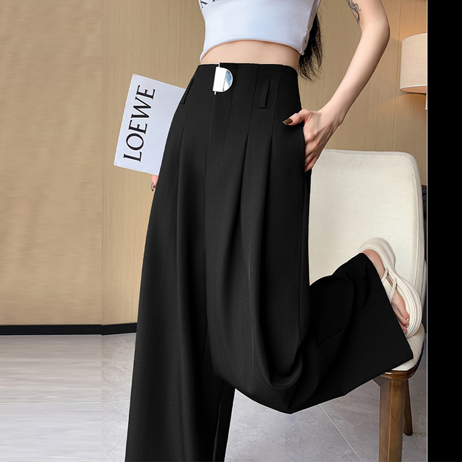 一粒扣设计感拖地阔腿裤女高腰垂坠感鱼骨西装裤宽松显瘦休闲长裤