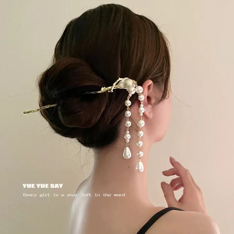 宛宛秋风 新中式金属珍珠流苏发簪子 小众轻奢高级感复古发钗头饰