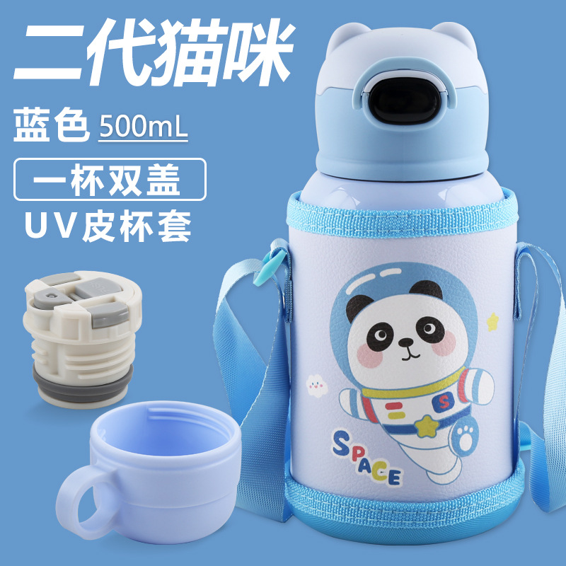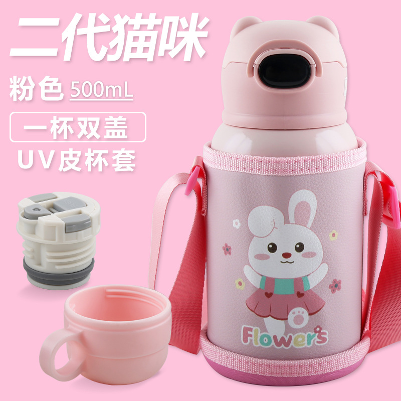 新款儿童保温杯带吸管 304不锈钢学生双盖两用便携卡通水壶水杯